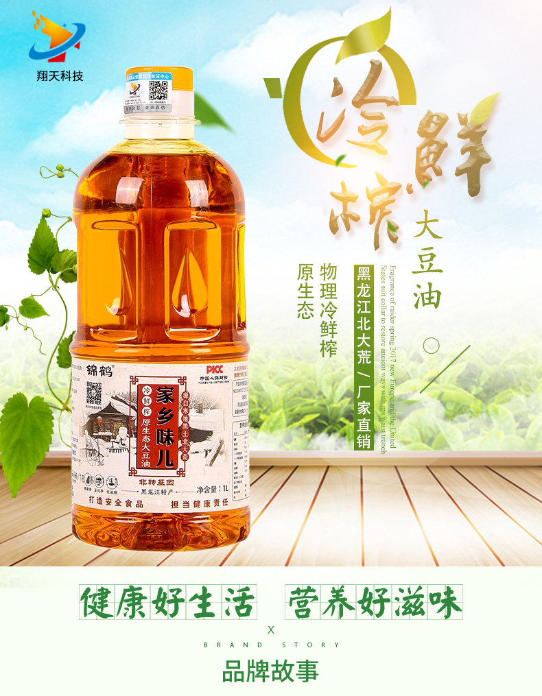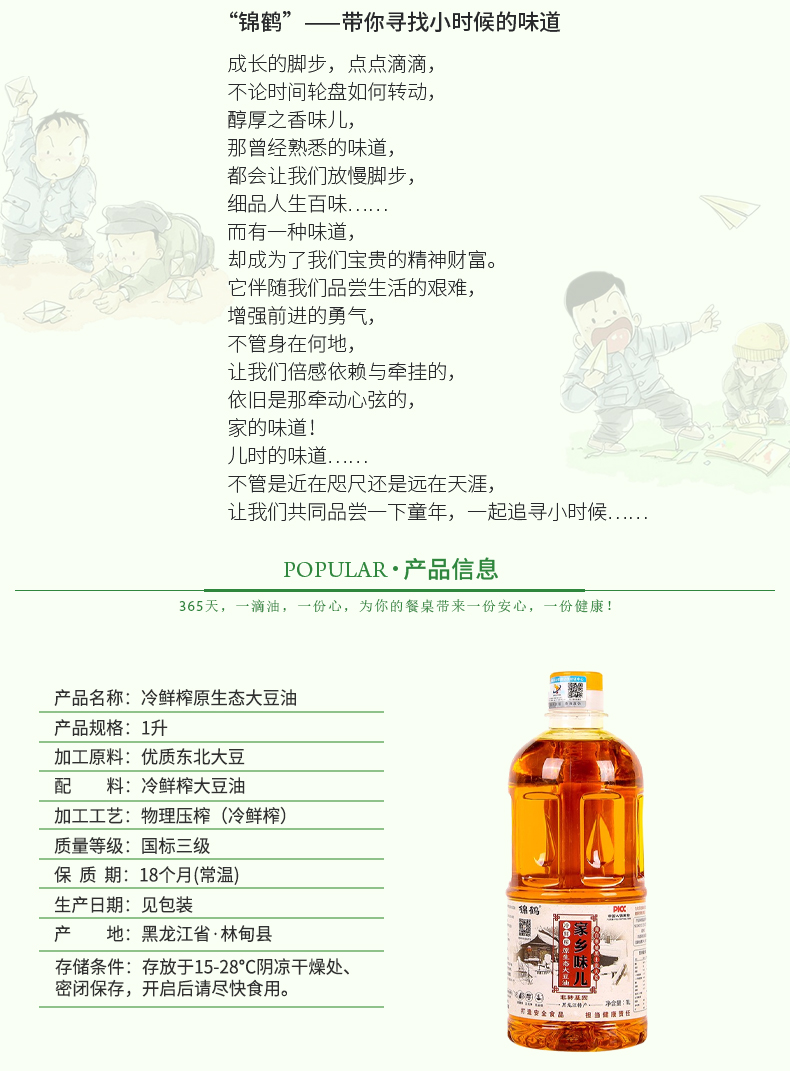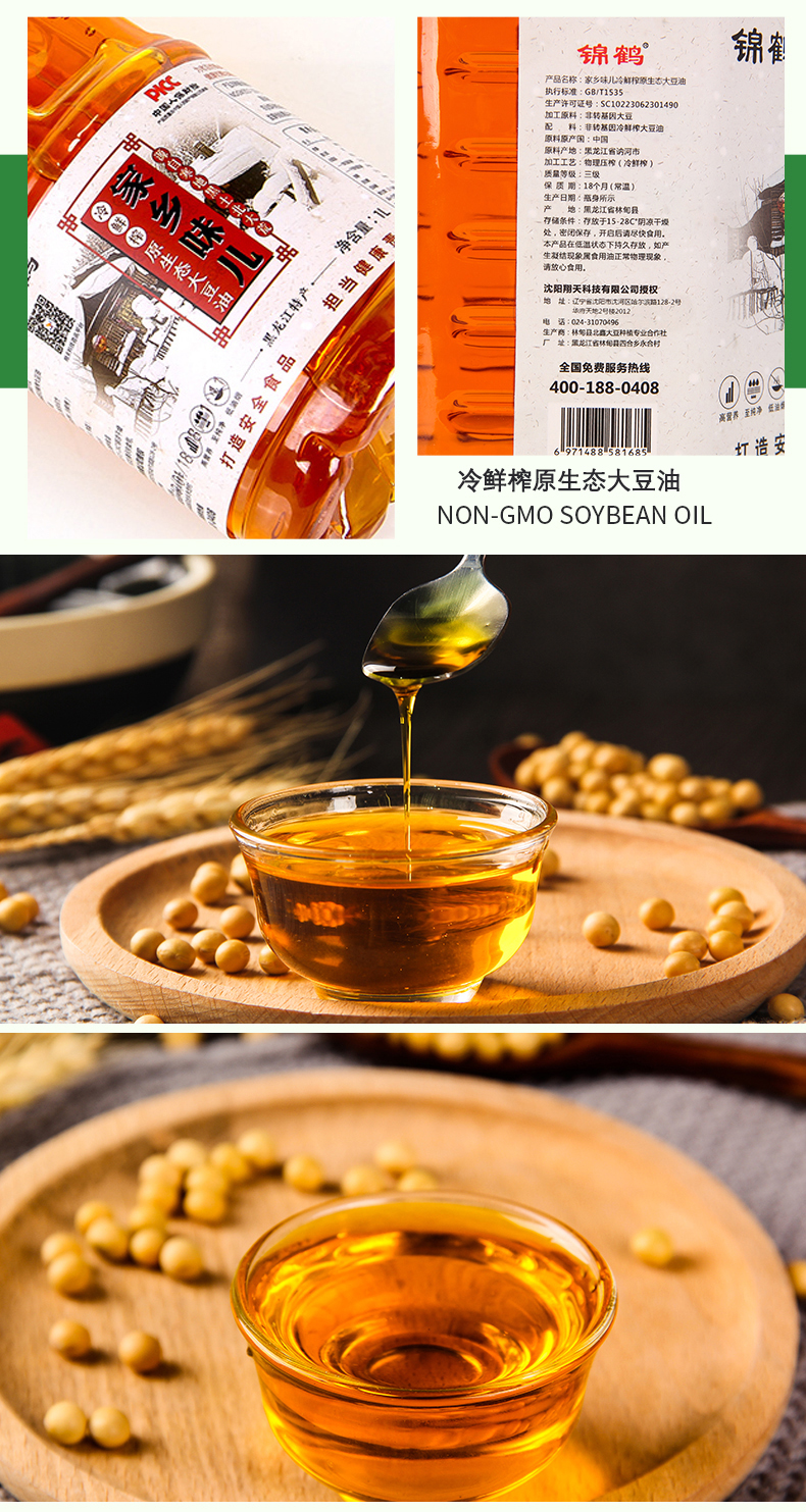 锦鹤 东北特产非转基因家乡味儿冷鲜榨大豆油 压榨 便携装 1L*1桶 白色(单位:瓶)
