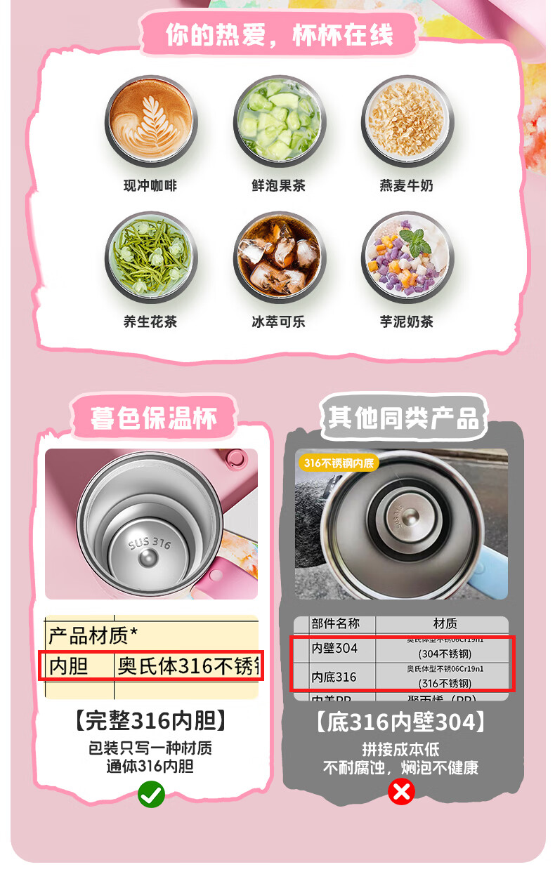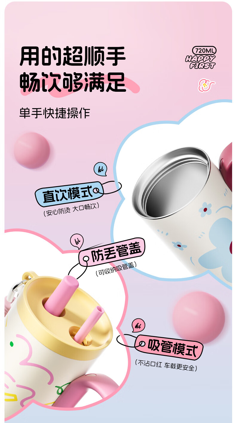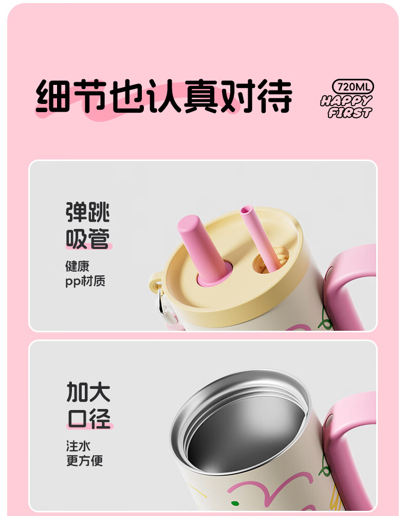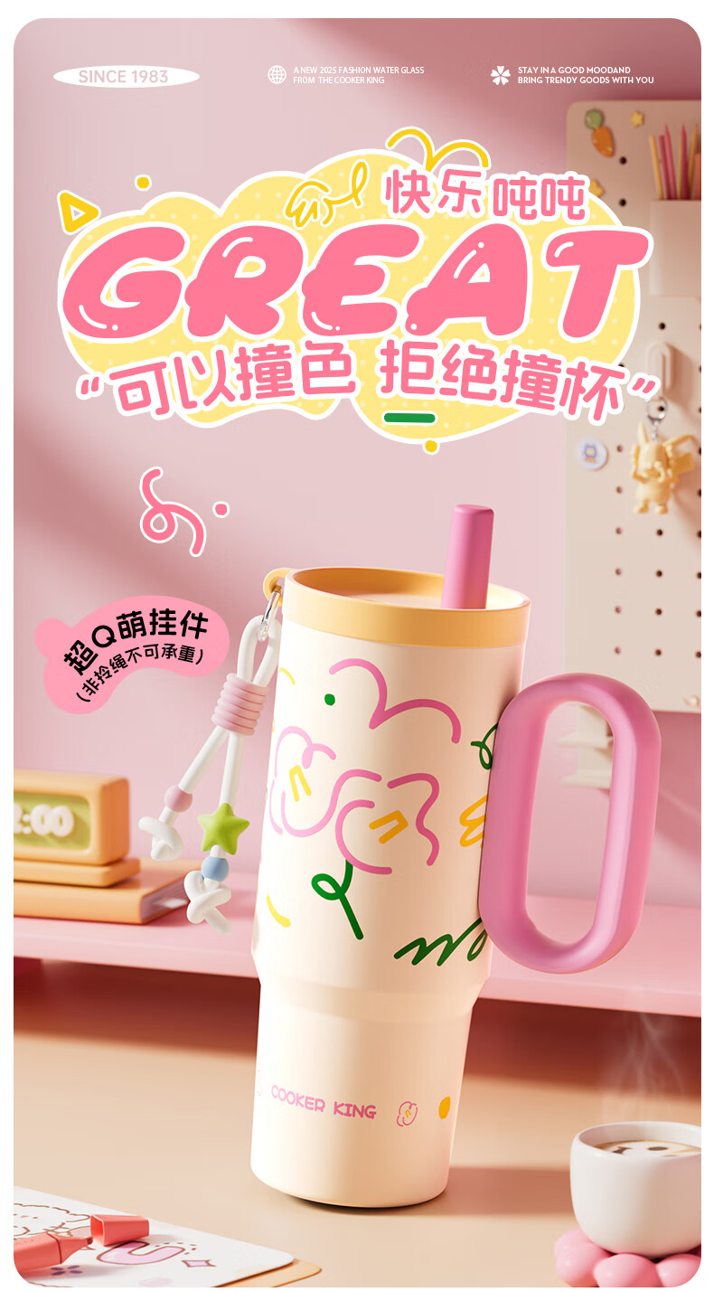 炊大皇 316不锈钢冰霸杯保温杯大容量女生高颜值水杯 MS72B3橙柚泡泡 720ml 混色(单位:个)