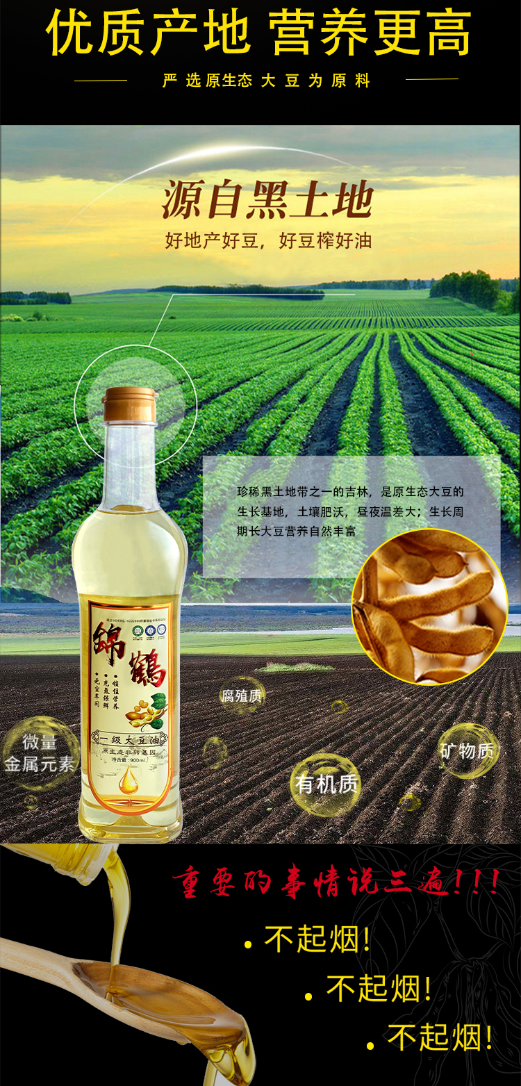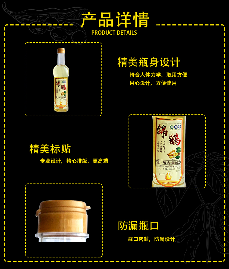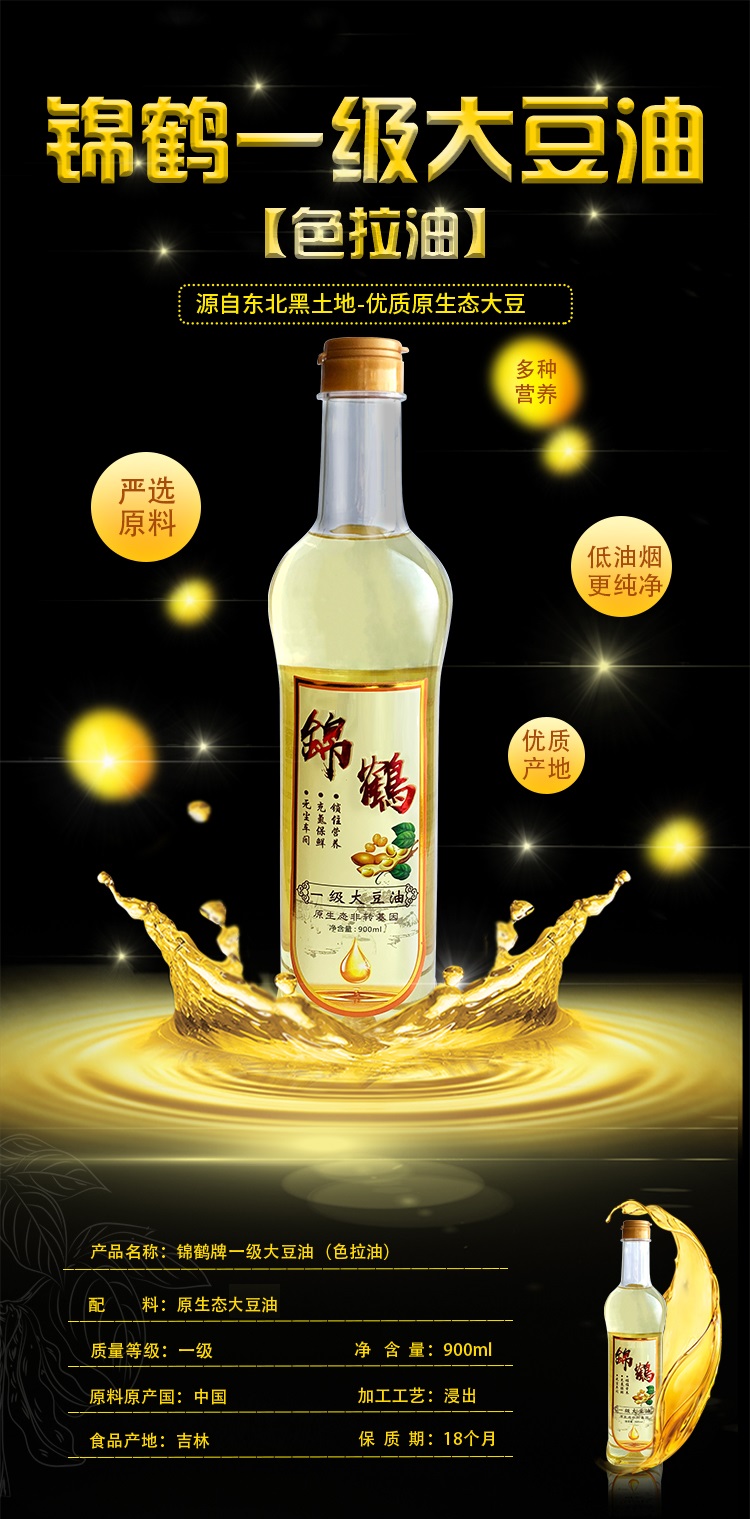 锦鹤 东北特产非转基因一级大豆油 便携装 900ml 浅黄色(单位:瓶)