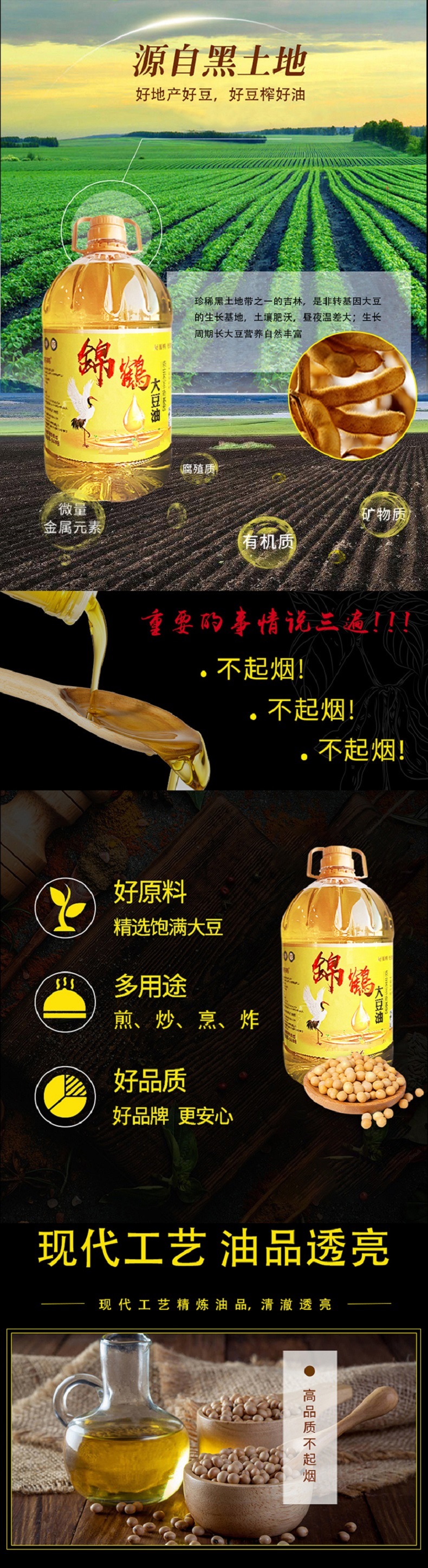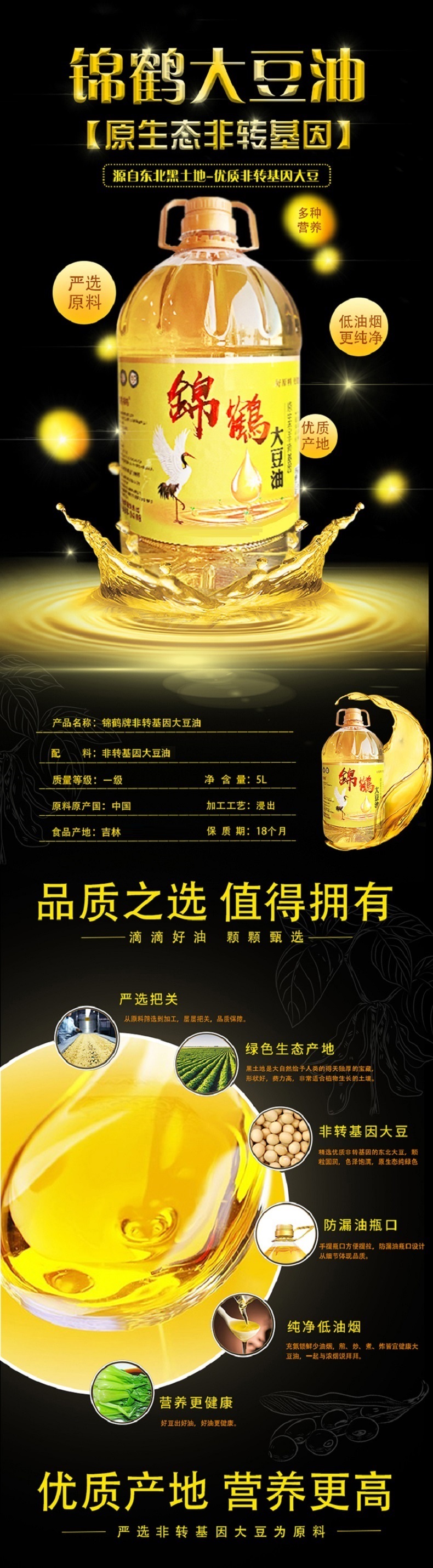 锦鹤 东北特产非转基因一级大豆油 家庭装 5L 黄色(单位:桶)