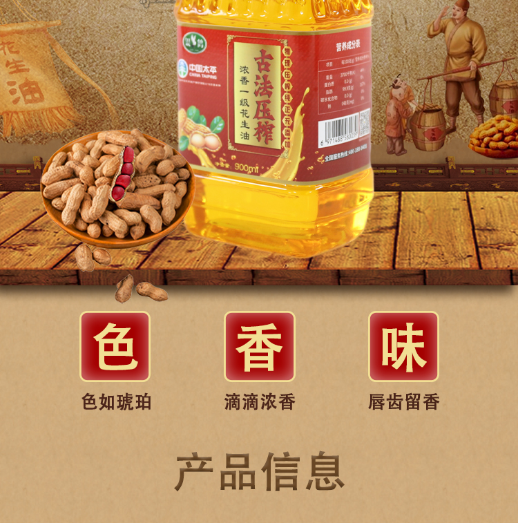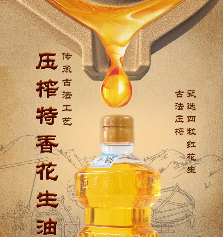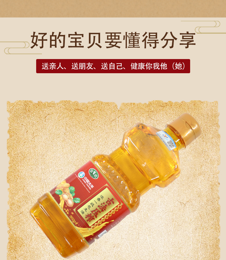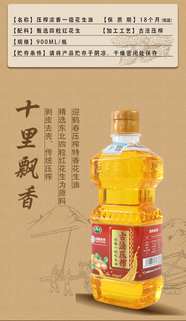 锦鹤 古法压榨浓香一级花生油 便携装 900ml 红色(单位:瓶)