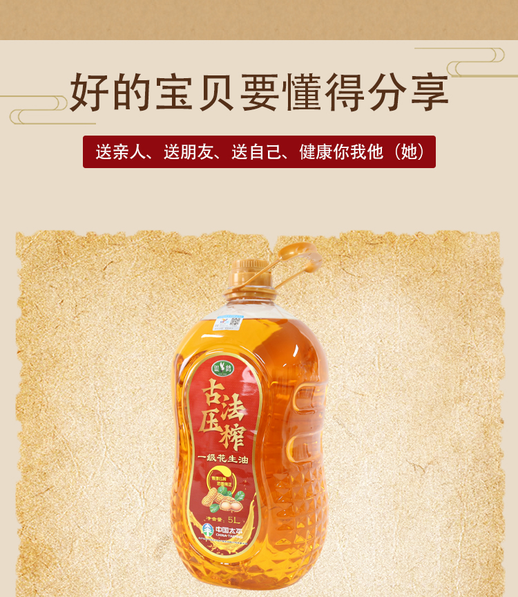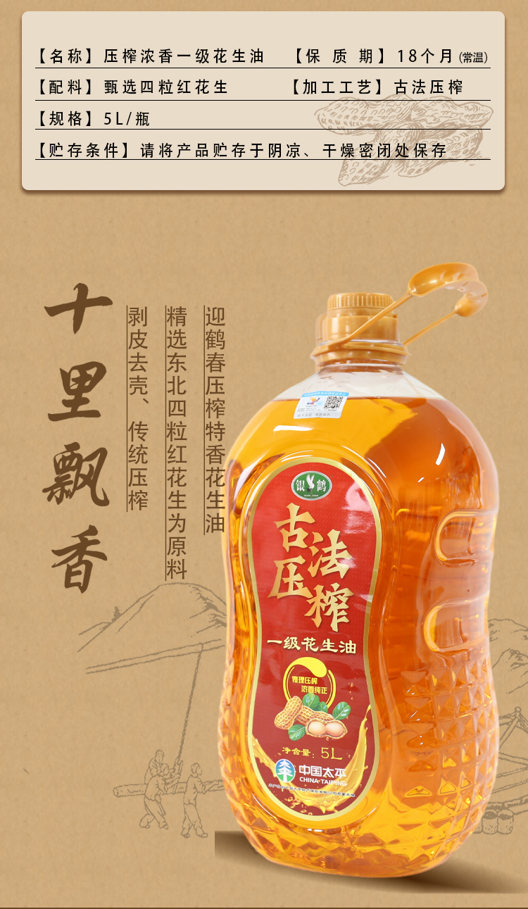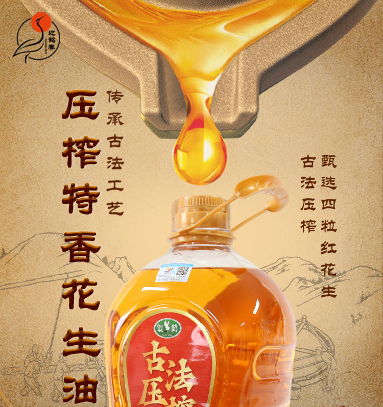 锦鹤 古法压榨浓香一级花生油 家庭装 5L 红色(单位:桶)