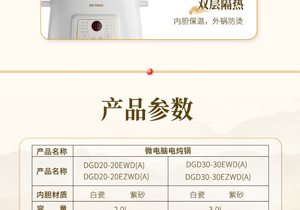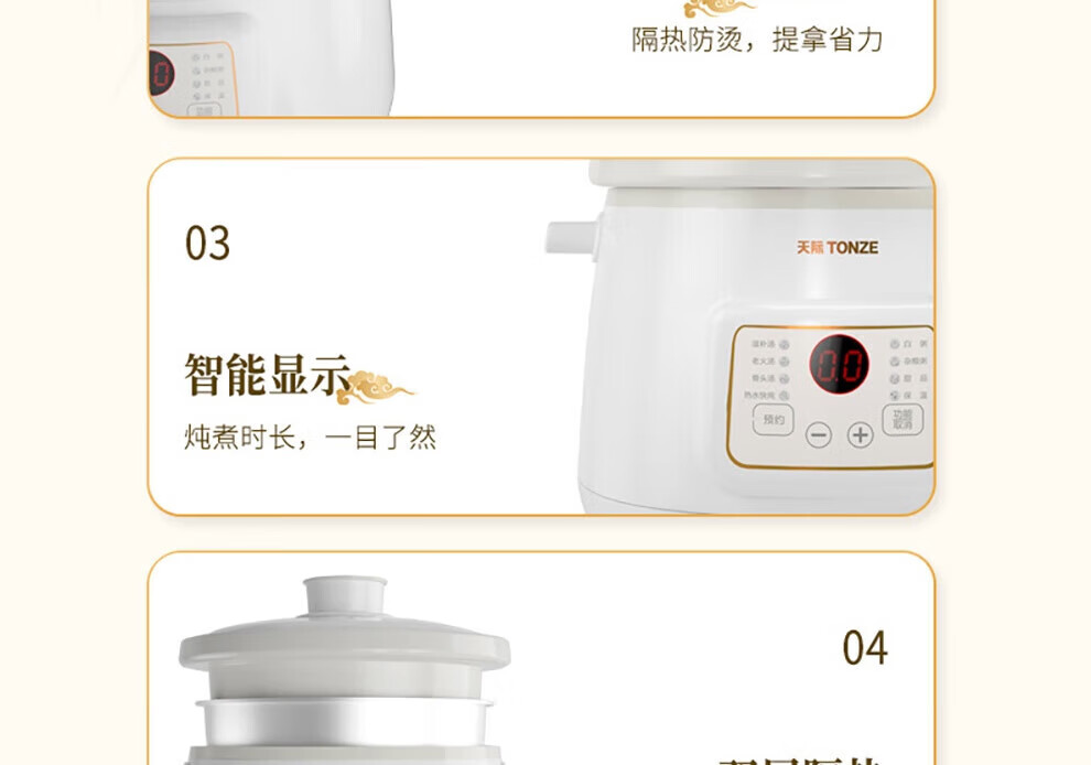 天际(TONZE) 电炖锅 DGD30-30EZWD(A) 3L 米白(单位:个)