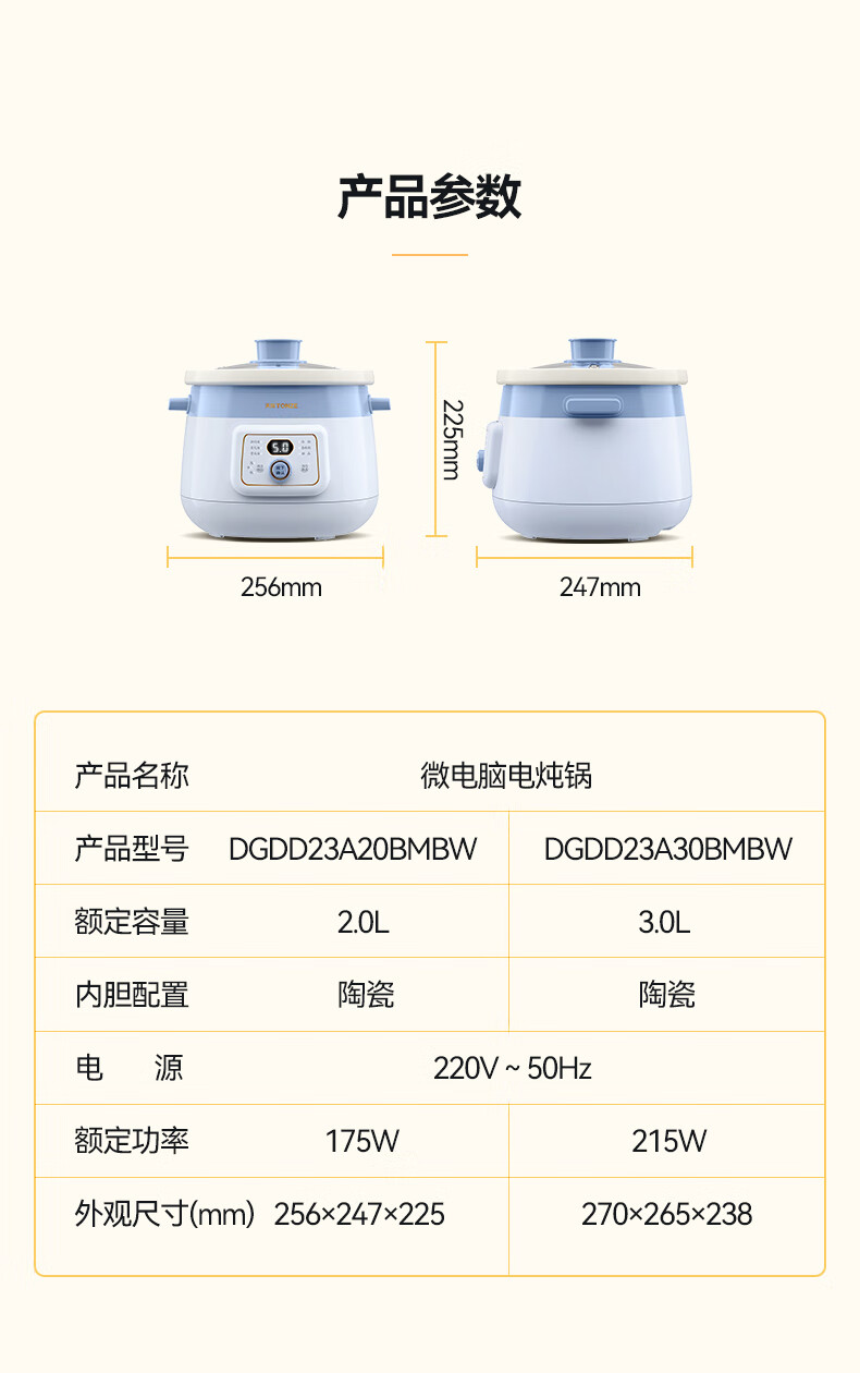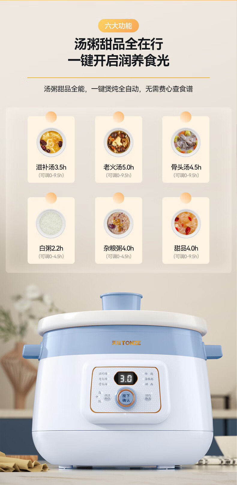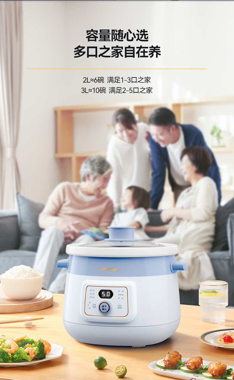 天际(TONZE) 电炖锅 DGDD23A20BMBW 2升 蓝白(单位:个)
