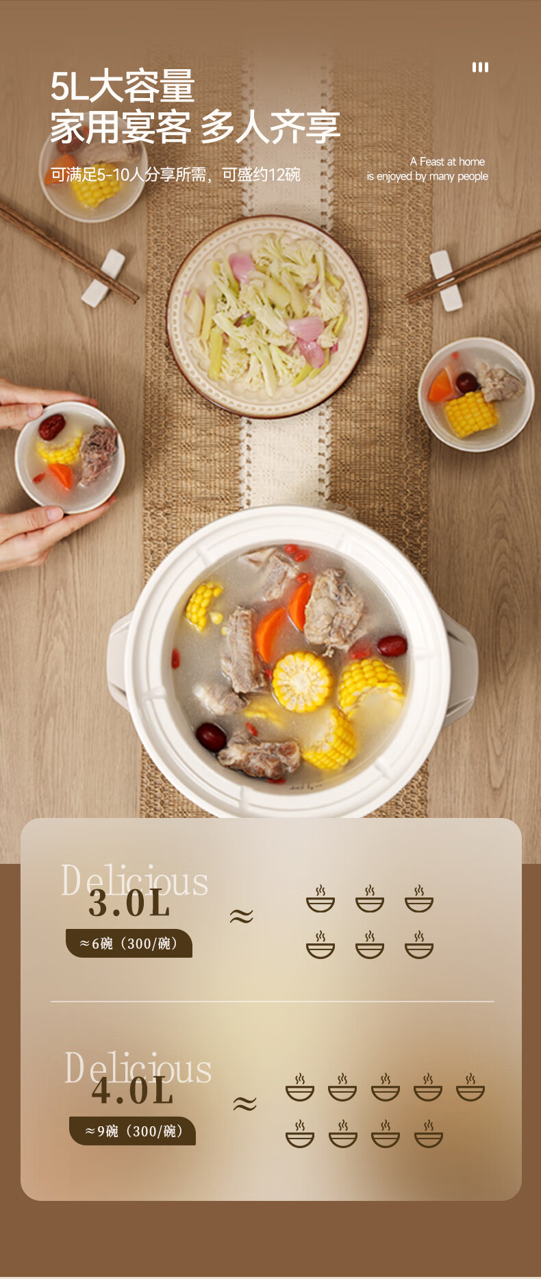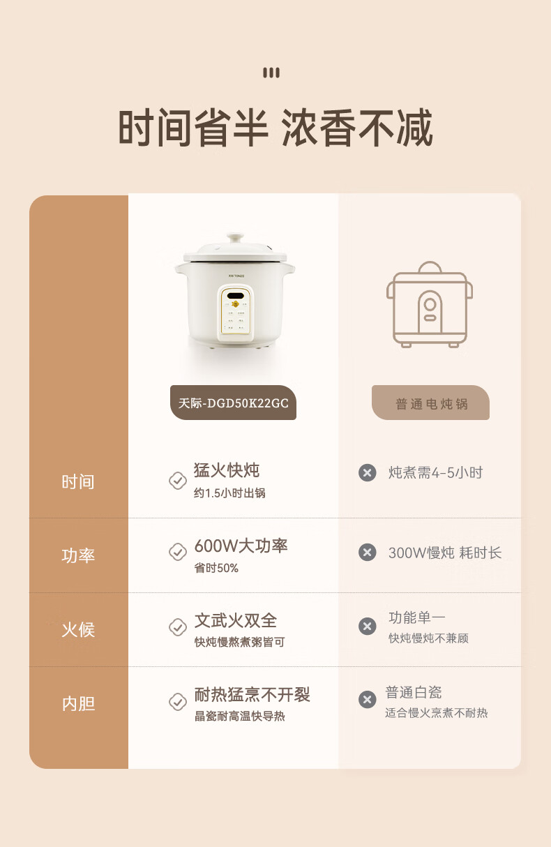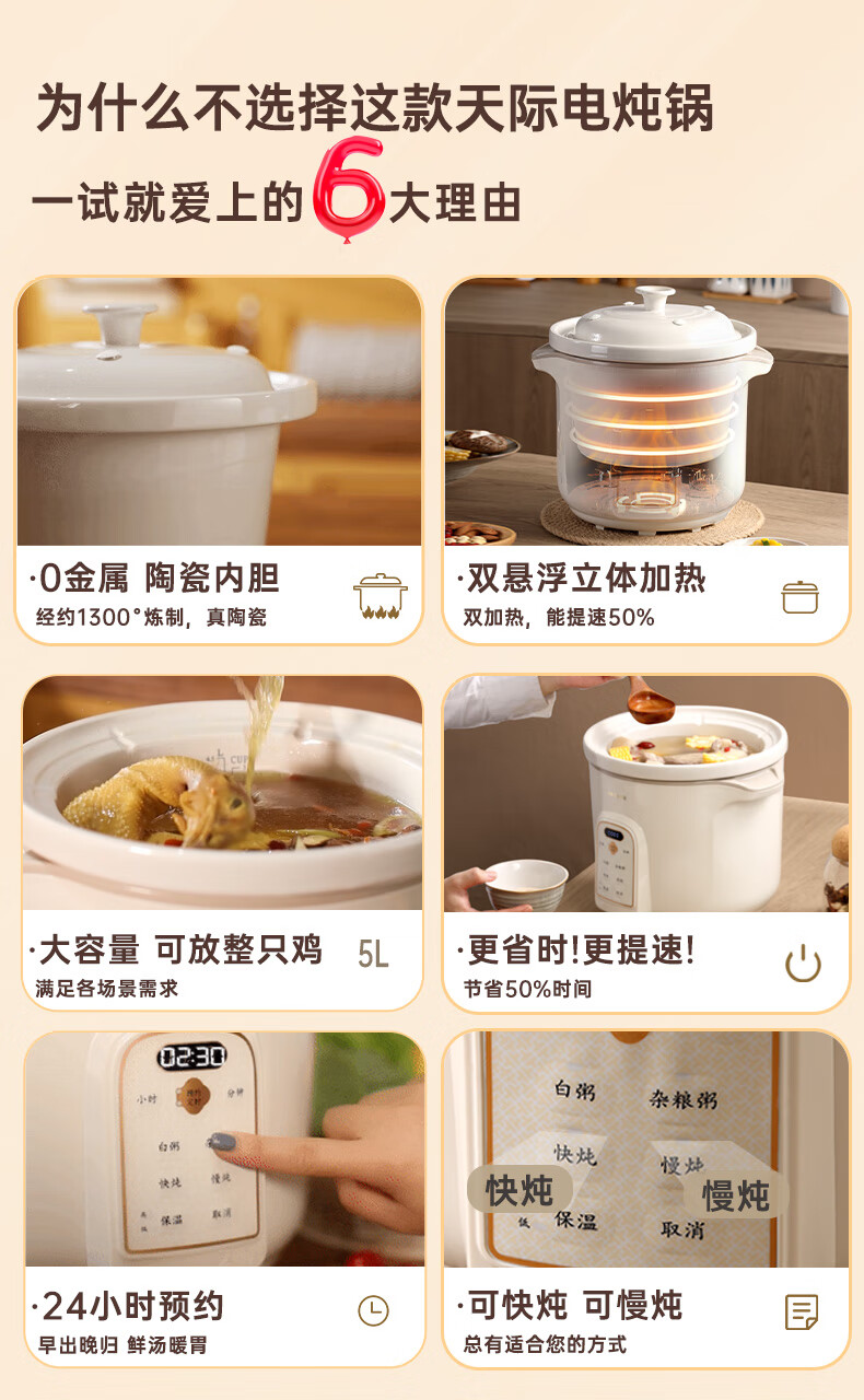 天际(TONZE) 电炖锅 DGD50K22GC 5升 白色(单位:个)