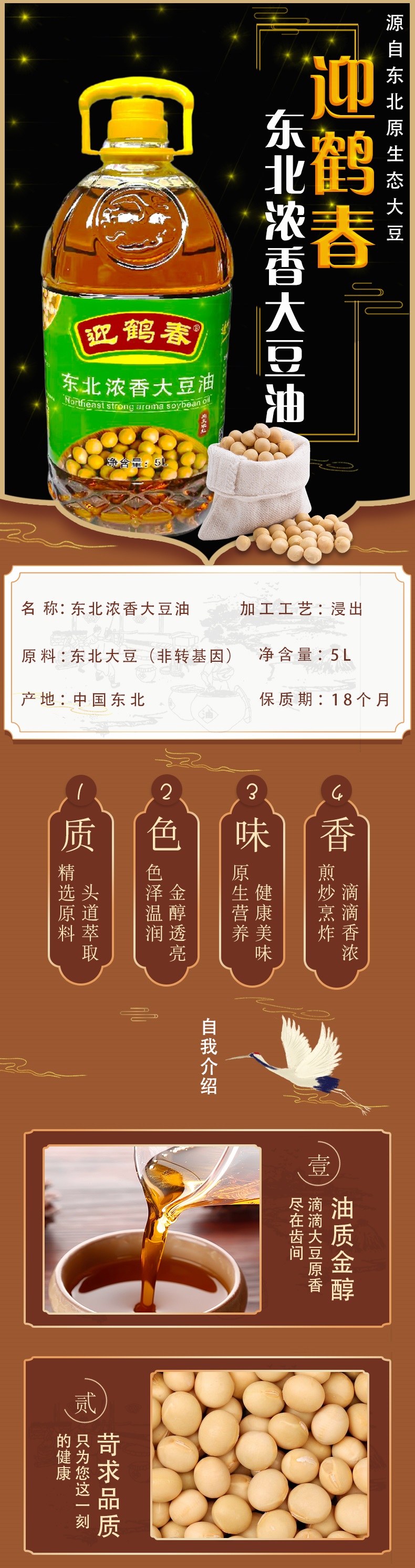 迎鹤春 东北非转基因浓香大豆油 家庭装 5L 草绿色(单位:桶)