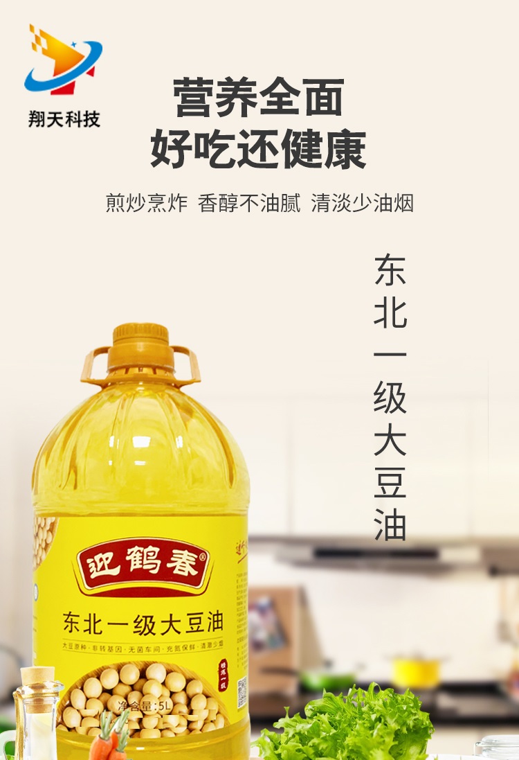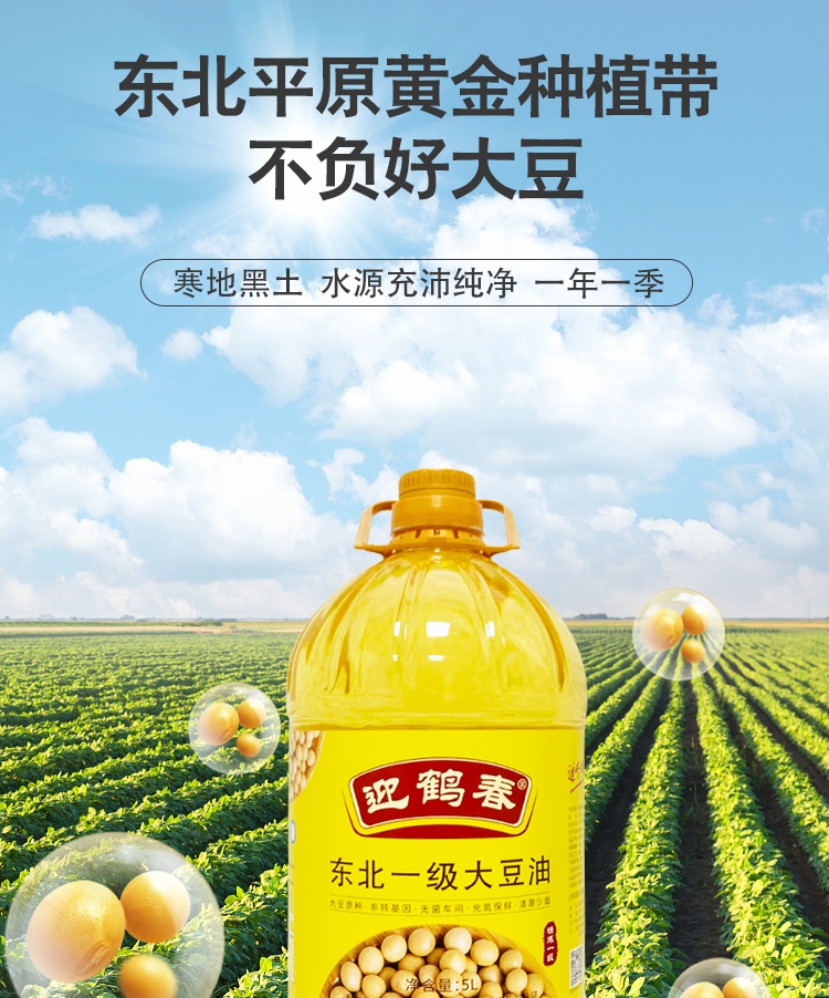 迎鹤春 东北非转基因一级大豆油 家庭装 5L 黄色(单位:桶)