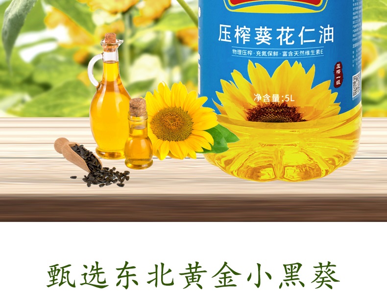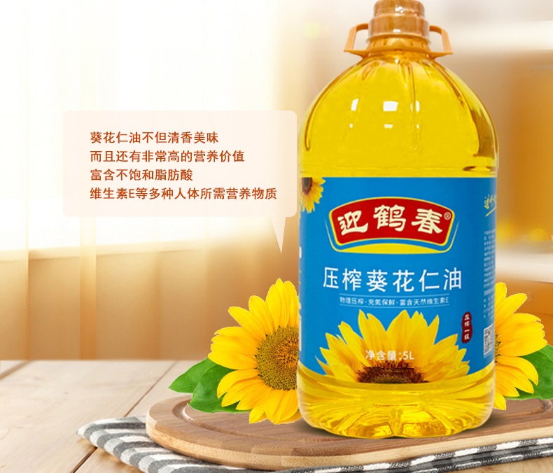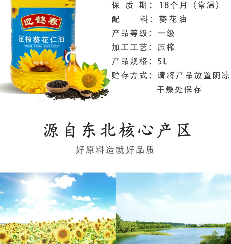 迎鹤春 东北压榨清香一级葵花仁油 葵花籽油 家庭装 5L 天蓝色(单位:桶)