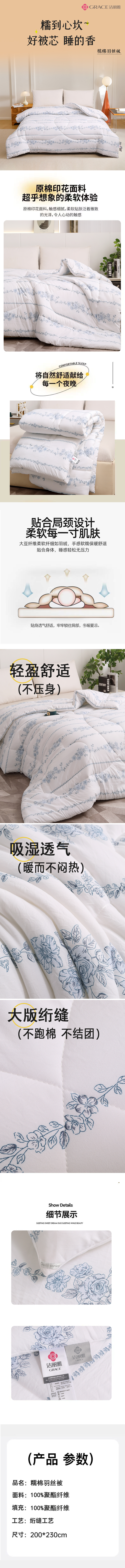 洁丽雅(Grace) 糯棉羽丝被 JLY-YHK011 200x230cm 白色(单位:床)
