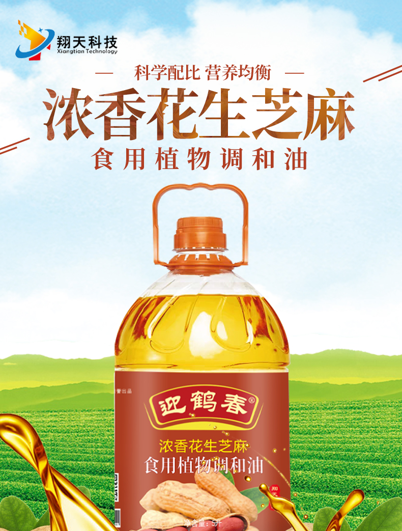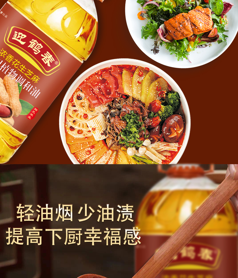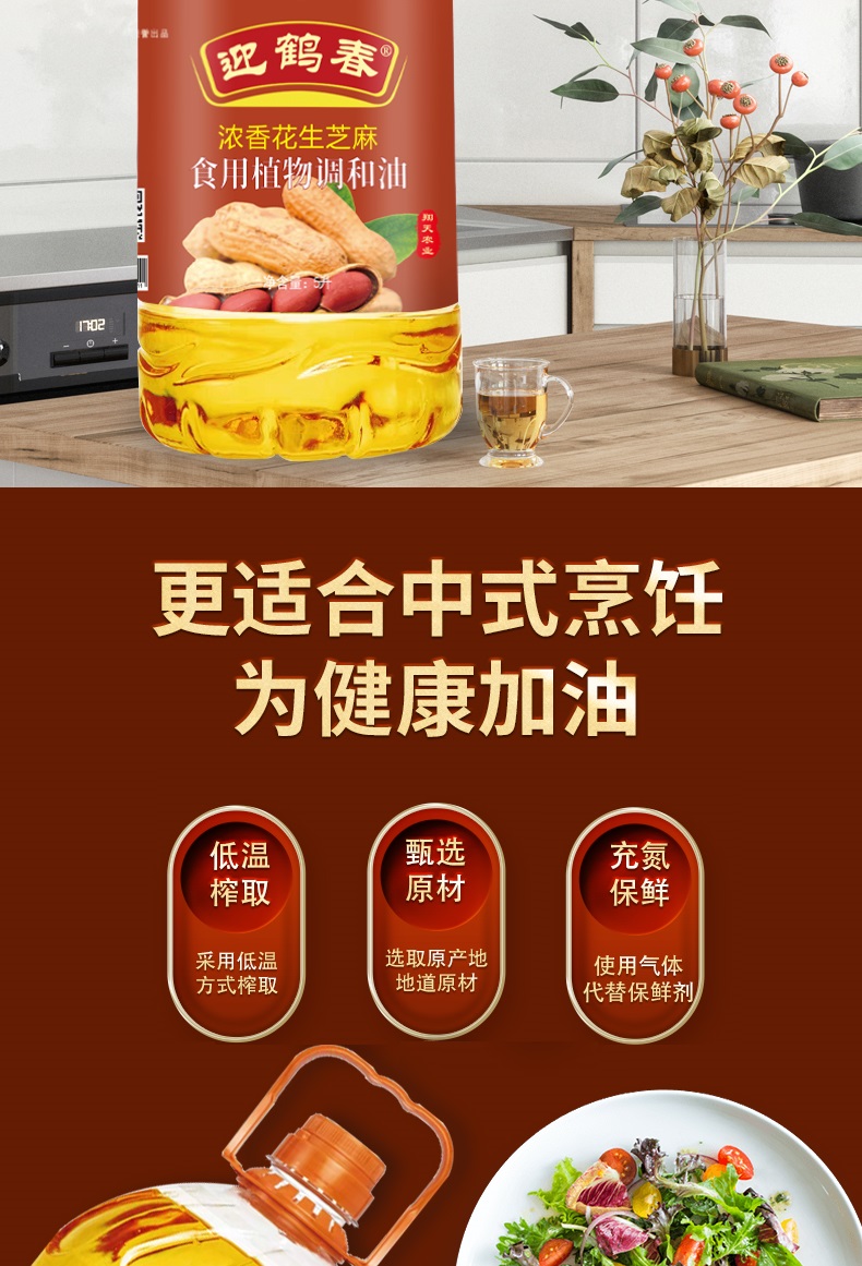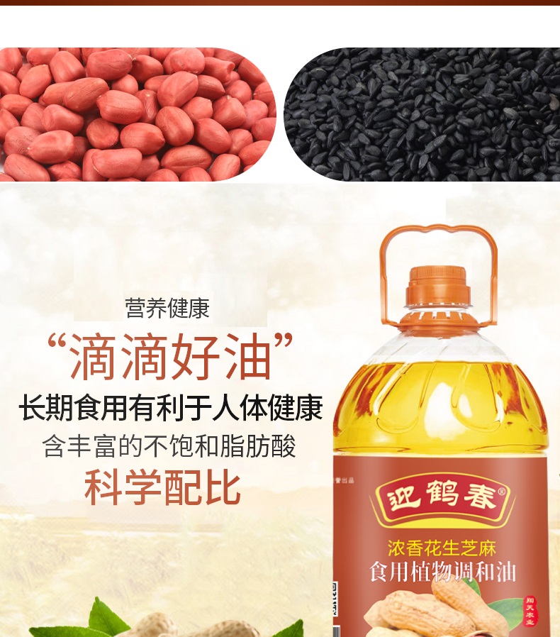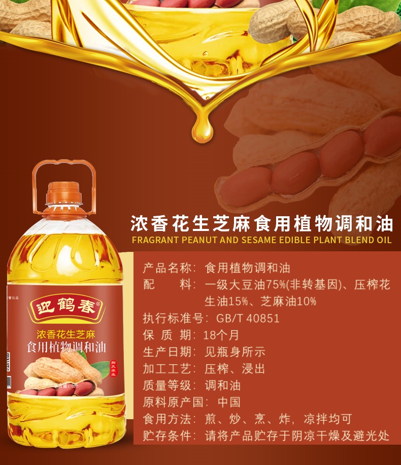 迎鹤春 浓香花生芝麻食用植物调和油 家庭装 5L 浅棕色(单位:桶)