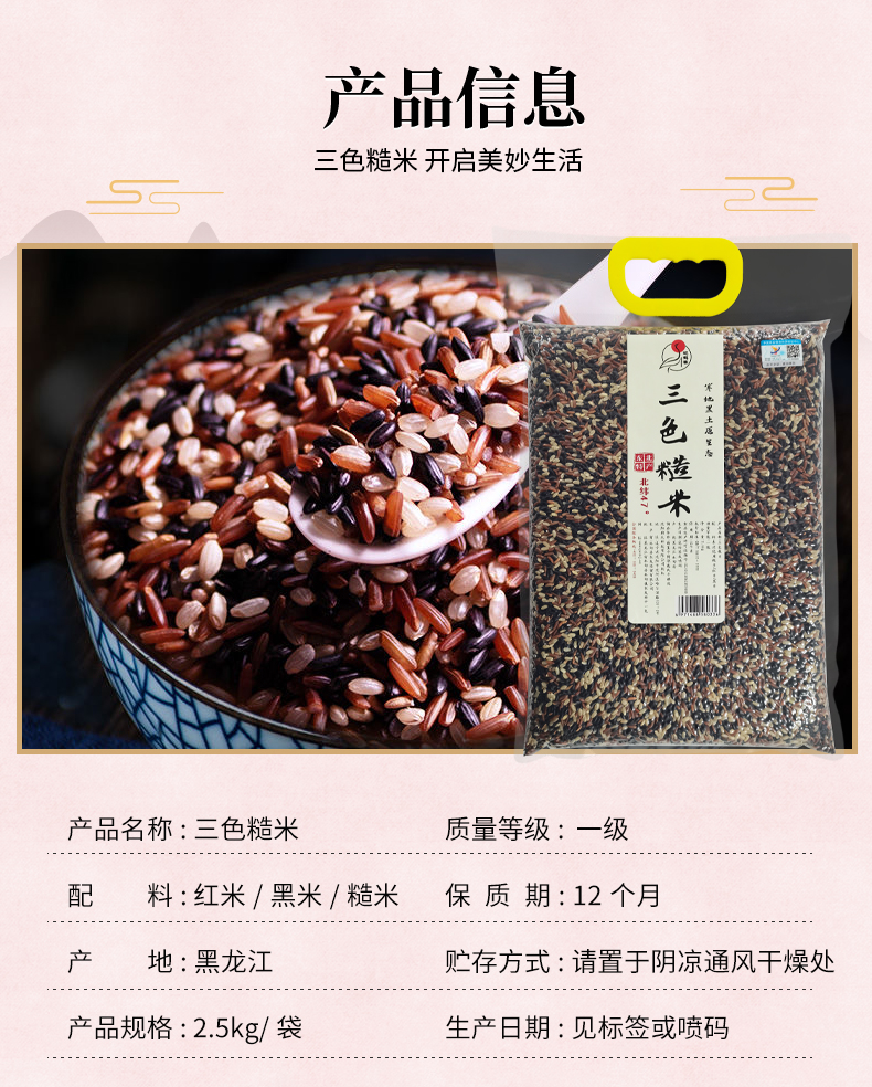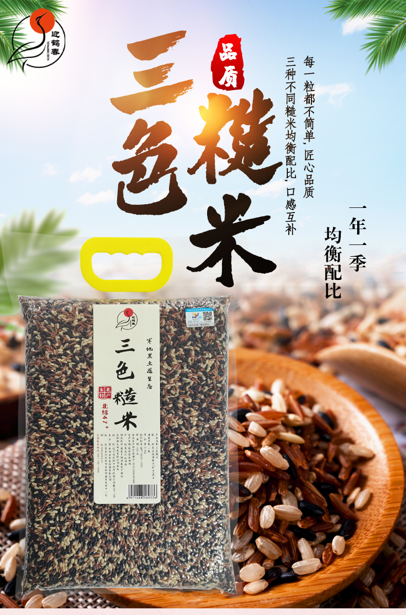 迎鹤春 东北特产五谷杂粮低脂三色糙米 真空包装 2.5kg 奶白色(单位:袋)