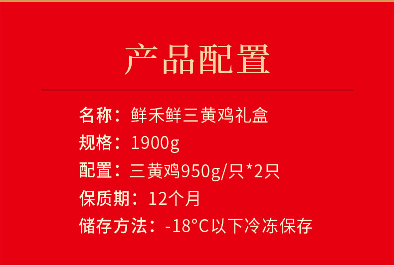 鲜禾鲜 精选食材 三黄鸡 1900g(950g*2只) 混色(单位:盒)