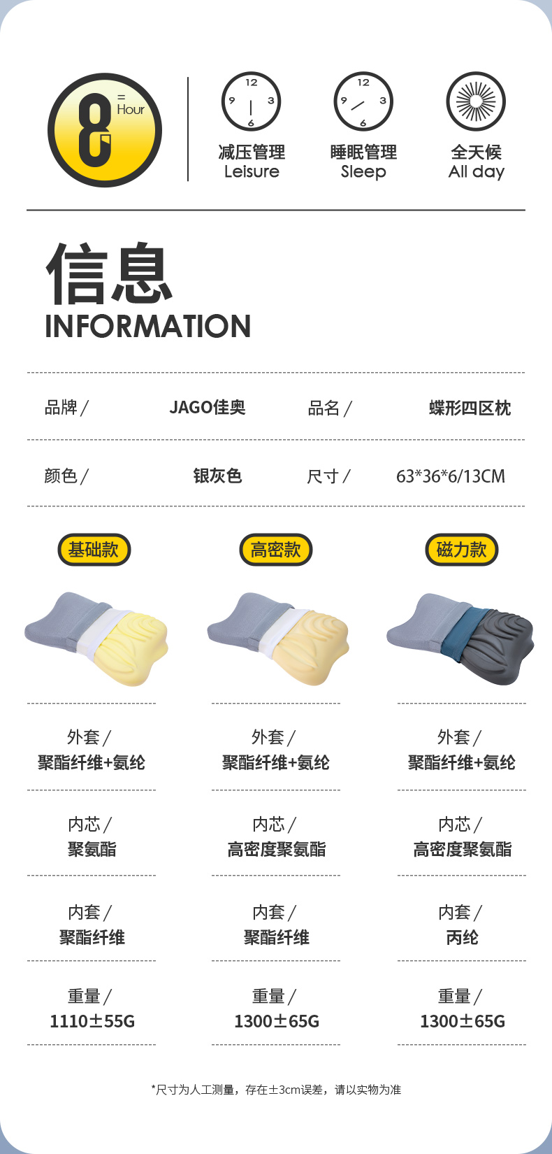 佳奥(JAGO) 蝶形四区枕 230102JK0100MB7 63*36*6*13CM 深灰色(单位:个)