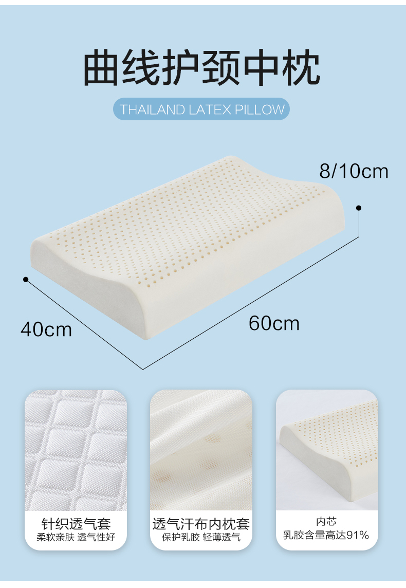 博洋家纺BEYOND HOME TEXTILE 乳胶枕芯—云眠 W923143011005 60*40*10/8cm 象牙色(单位:个)