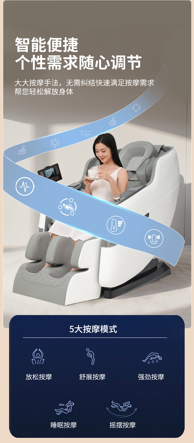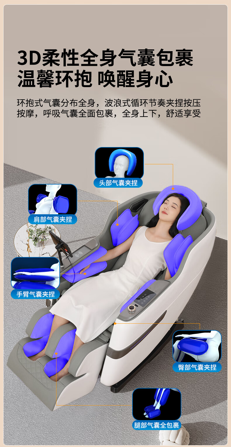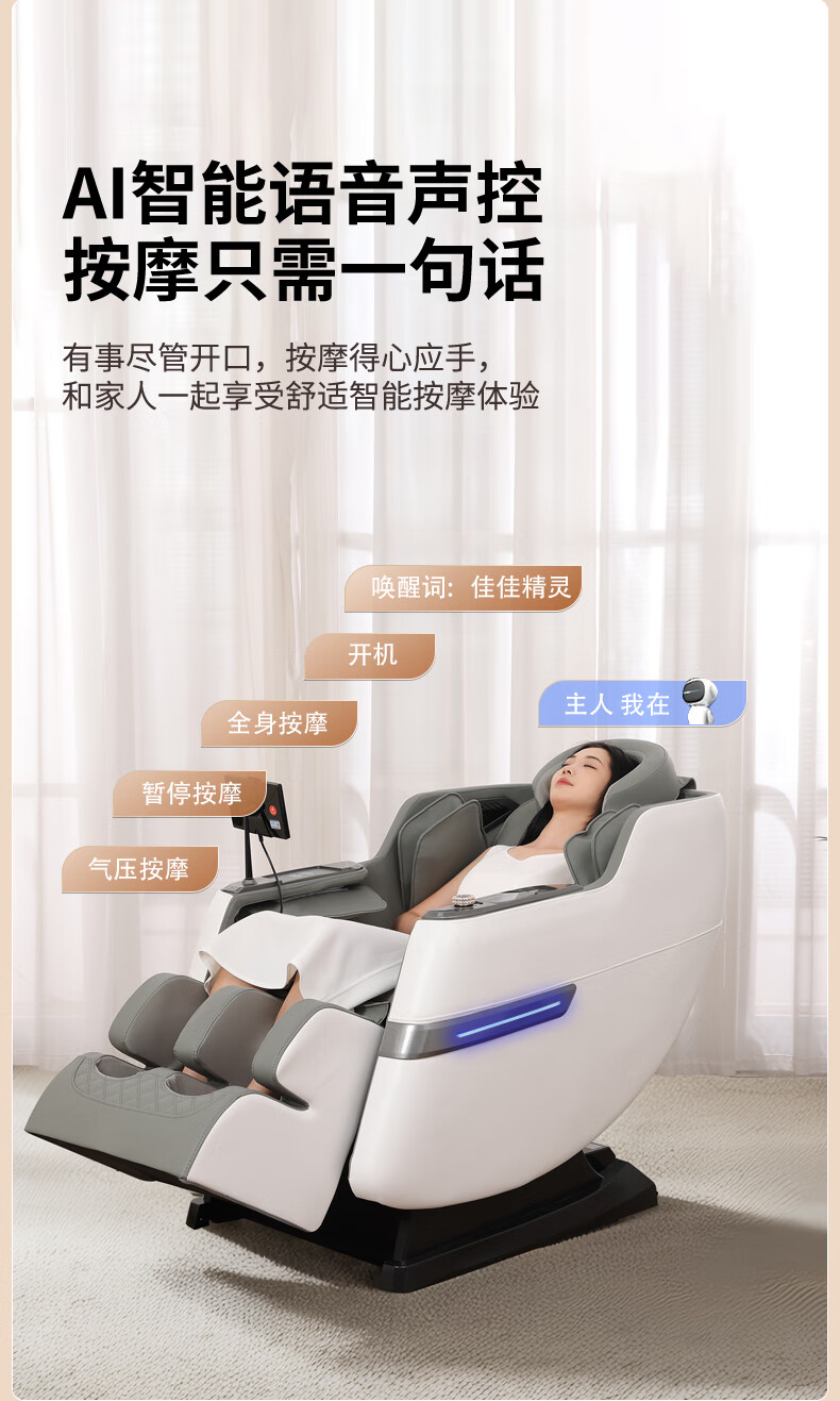 佳胜达(JSD) AI智能语音豪华舱全自动按摩椅 JSD-M05 115*76*104cm 白灰色(单位:台)