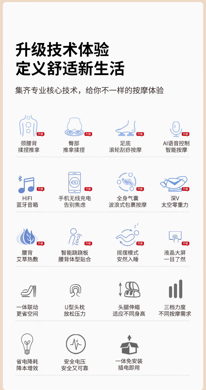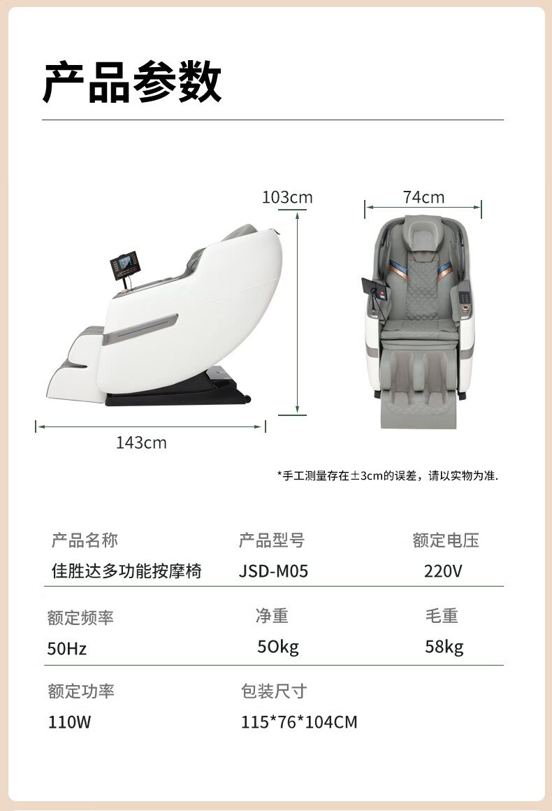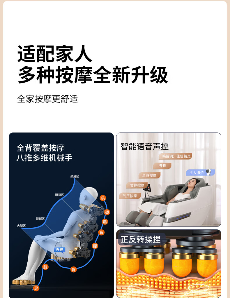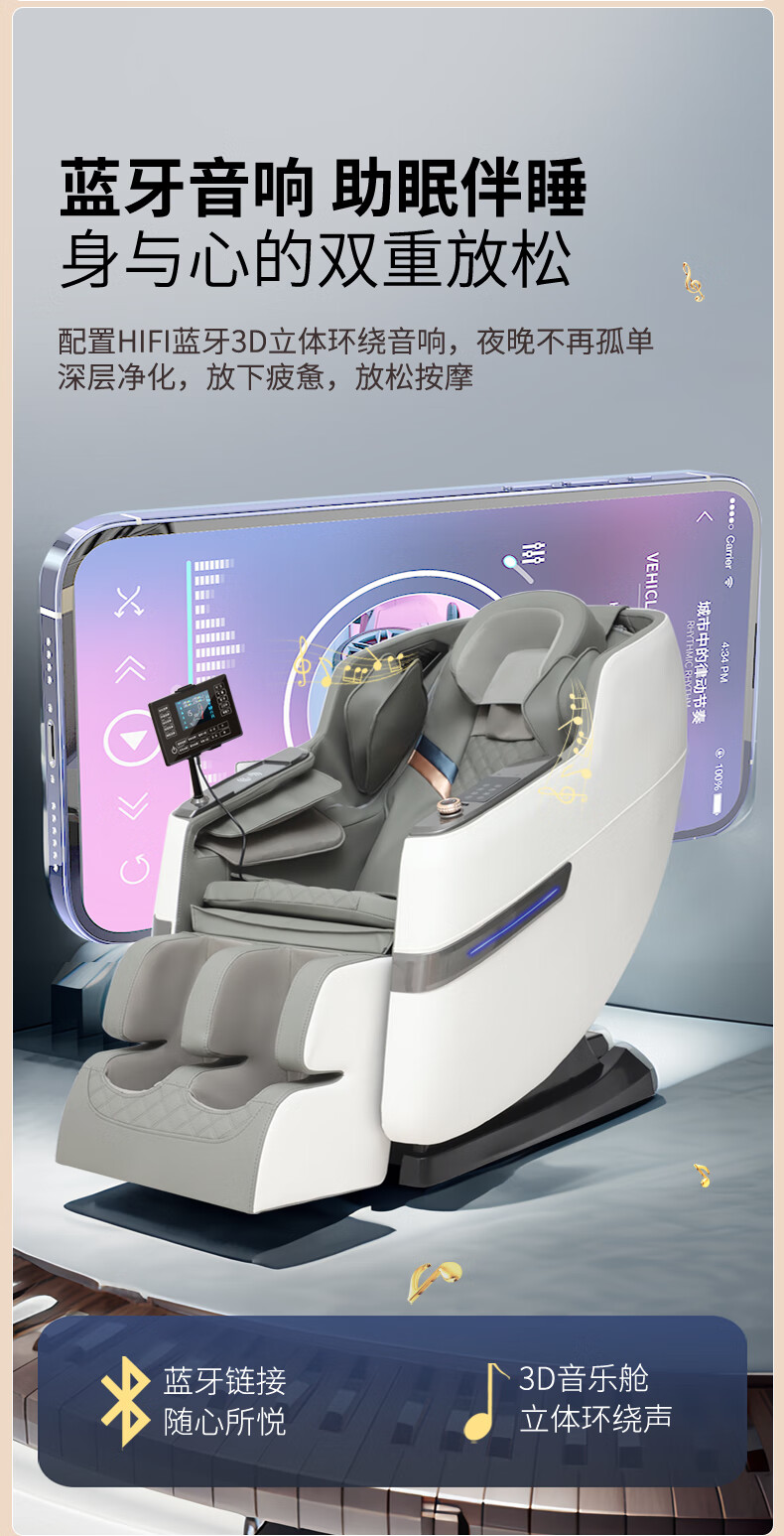 佳胜达(JSD) AI智能语音豪华舱全自动按摩椅 JSD-M05 115*76*104cm 白灰色(单位:台)