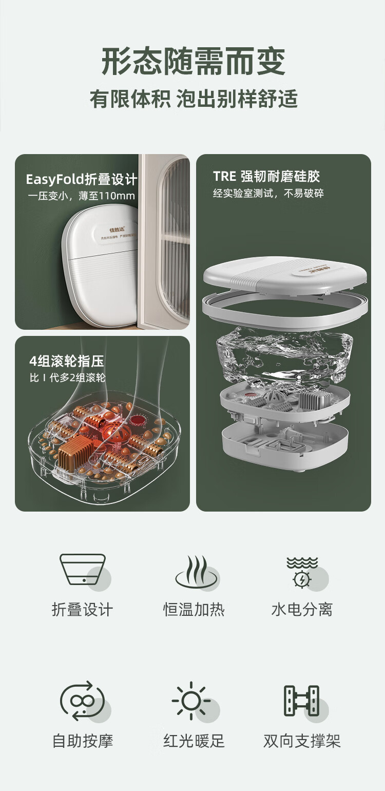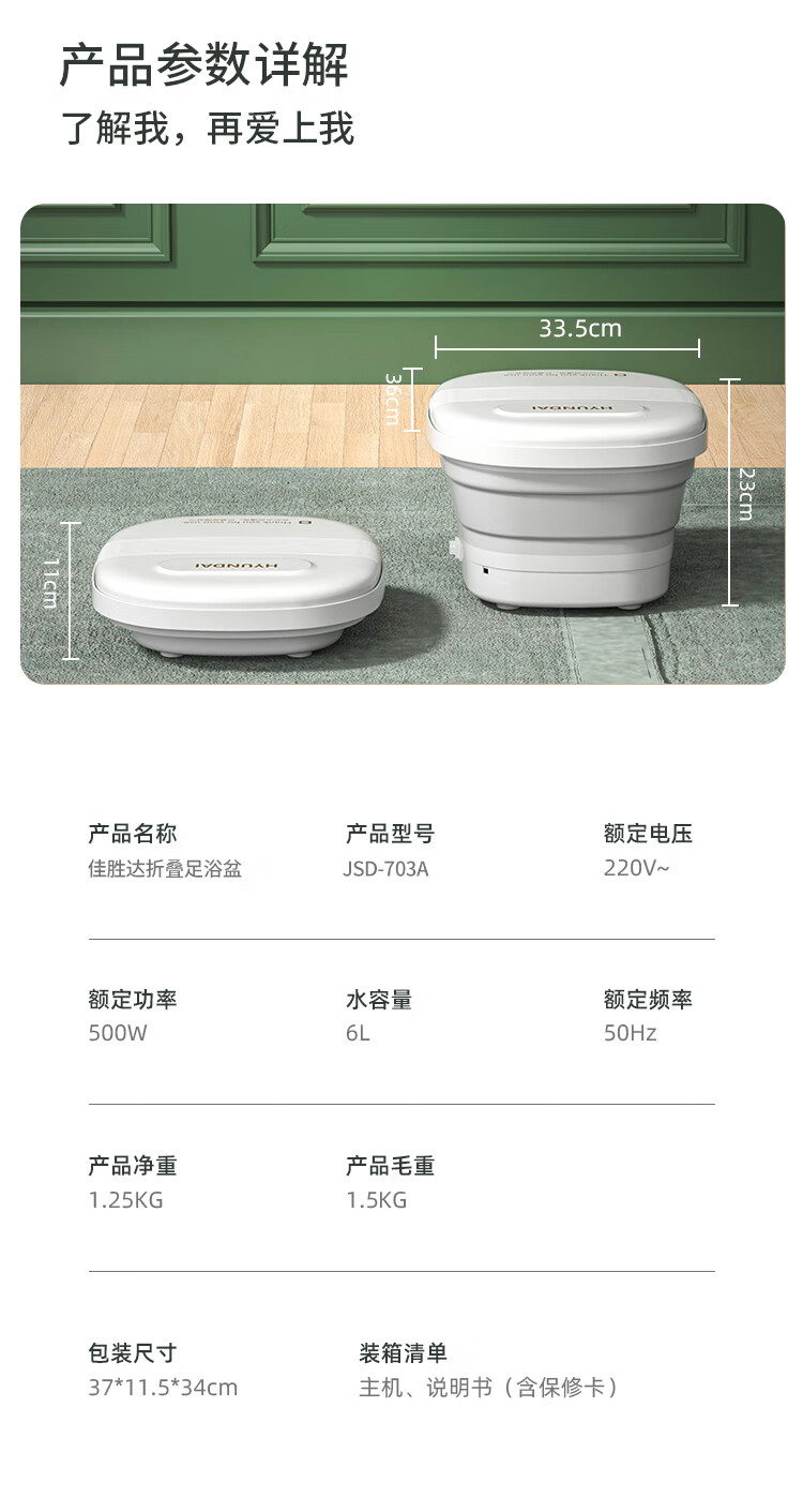 佳胜达(JSD) 恒温加热折叠足浴盆尊贵版 JSD-703A 500W 白色(单位:个)