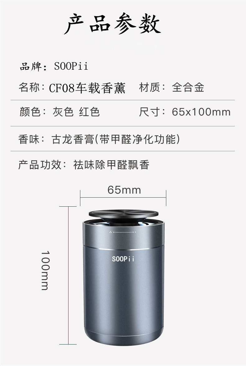 SOOPii首佩CF08车载香熏65*100mm/个 灰色