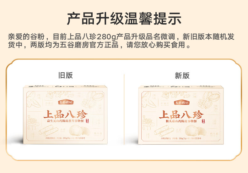 五谷磨房 猴头菇山药陈皮谷物 上品八珍 280g 本白色(单位:盒)
