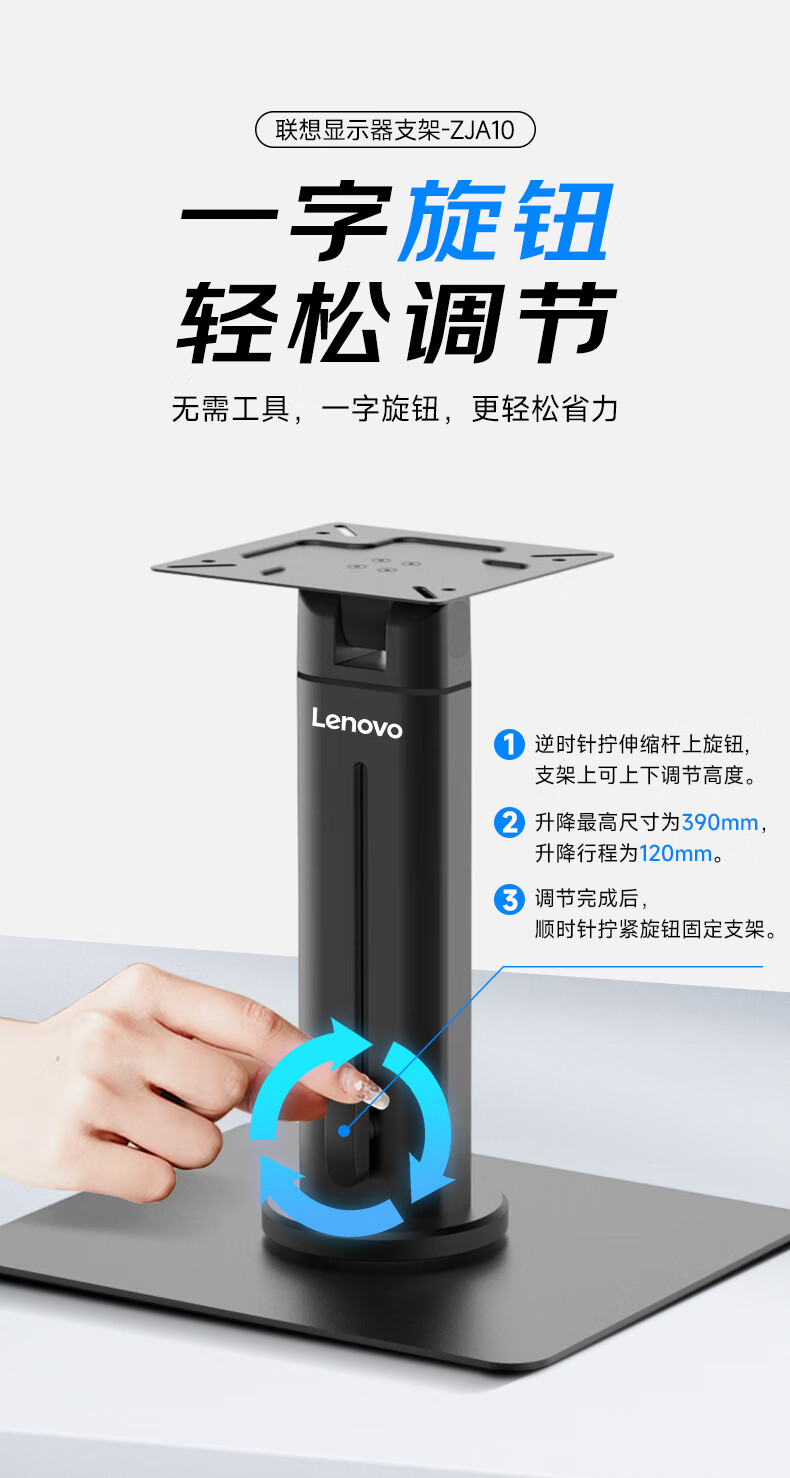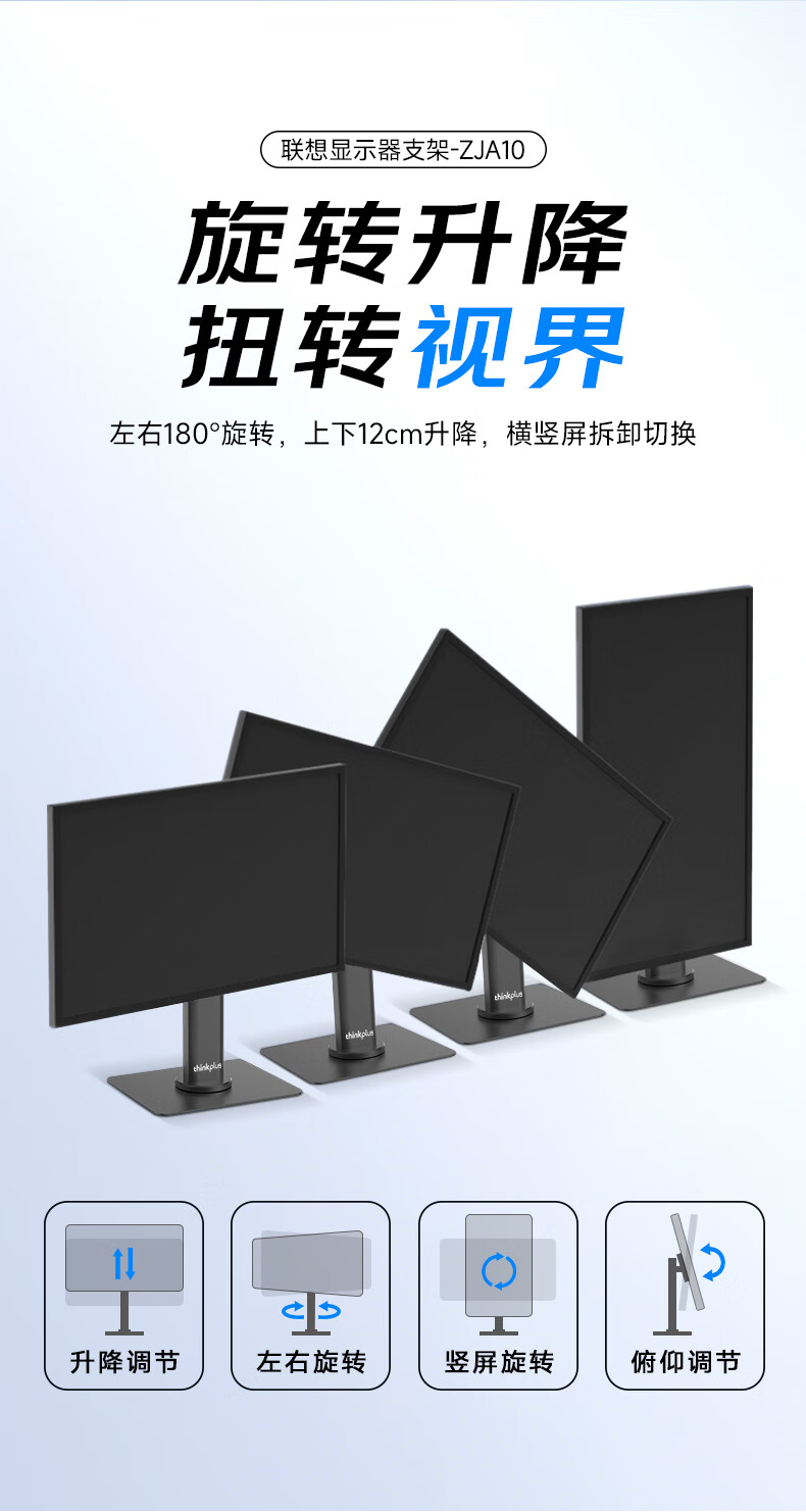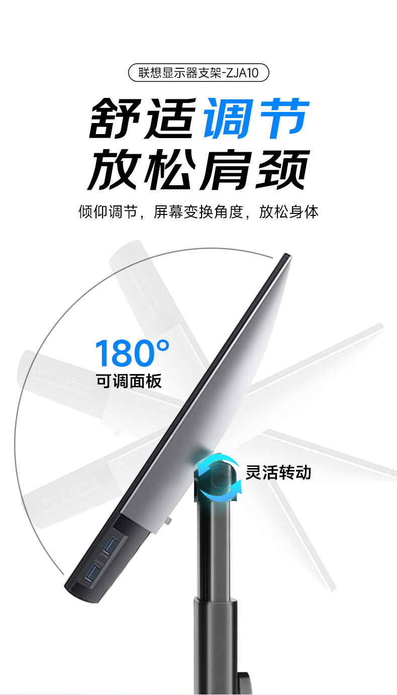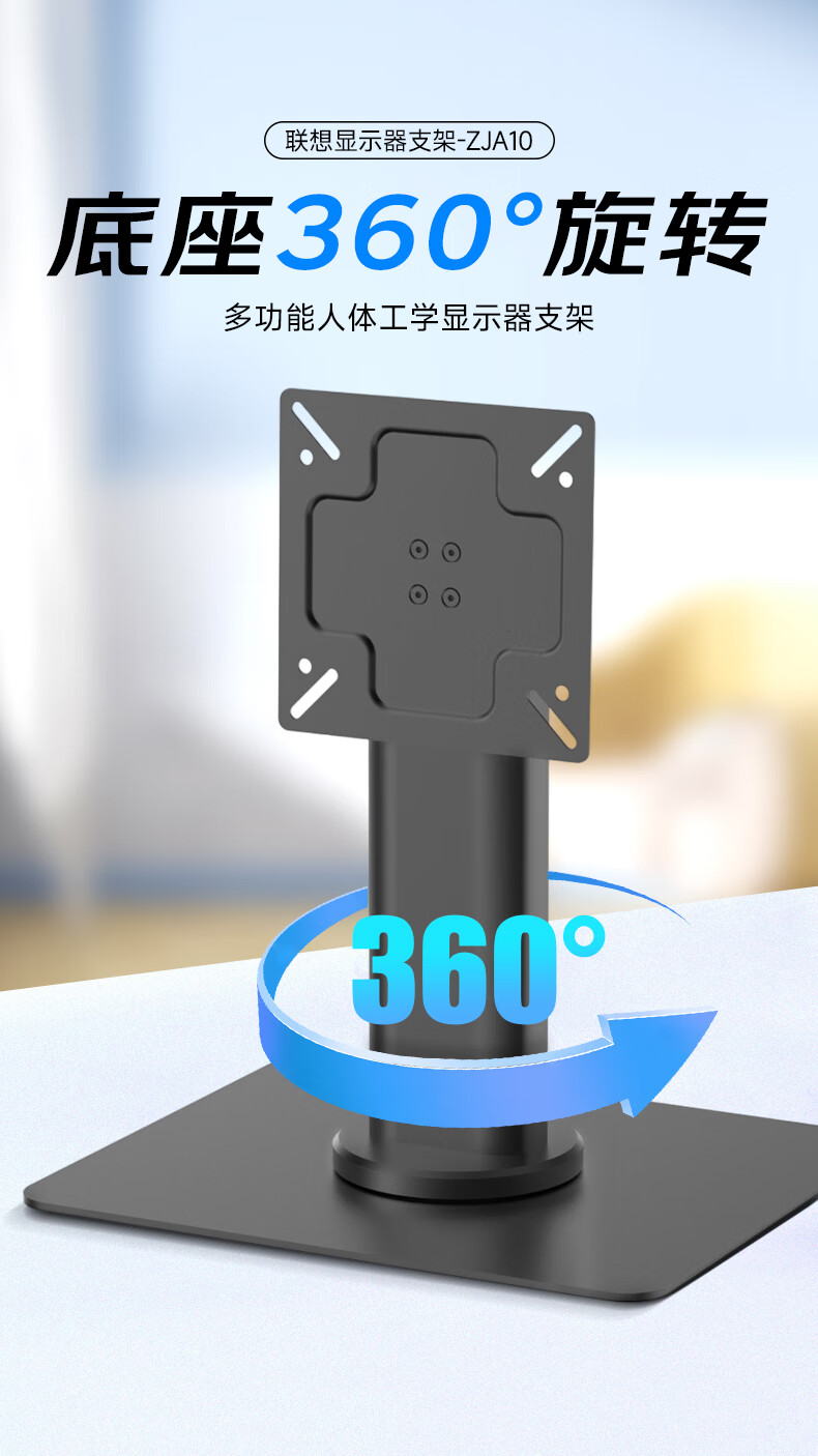 联想(Lenovo) 桌面办公显示器支架 ZJA10 底座360度可旋转 黑色(单位:个)
