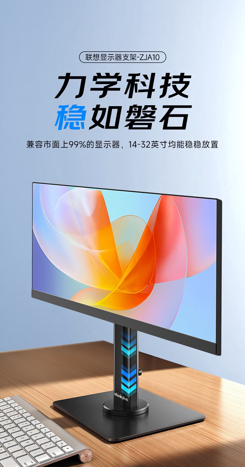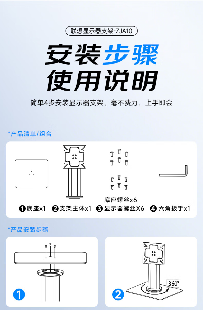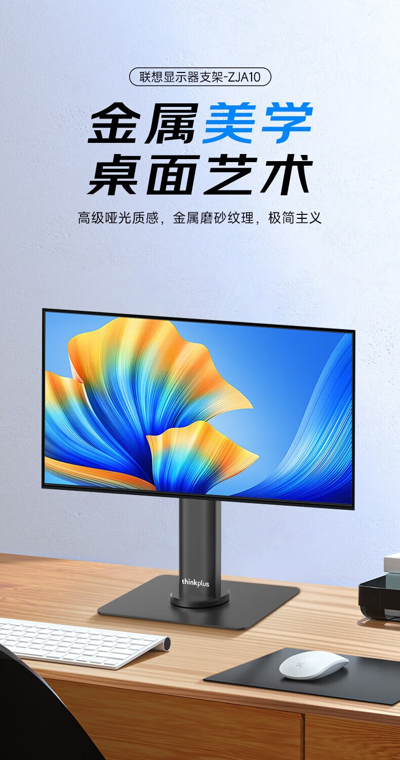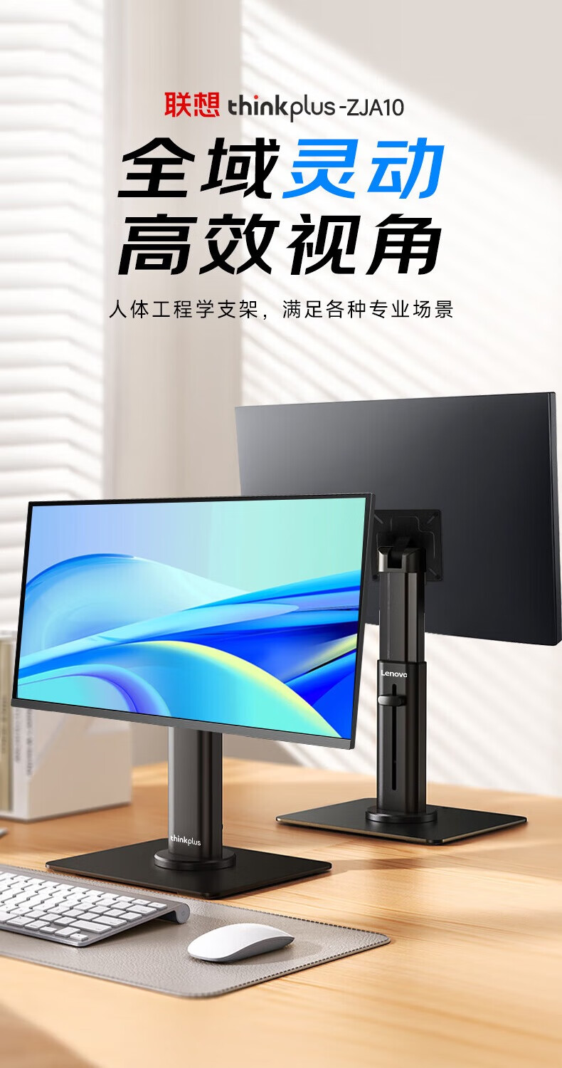 联想(Lenovo) 桌面办公显示器支架 ZJA10 底座360度可旋转 黑色(单位:个)