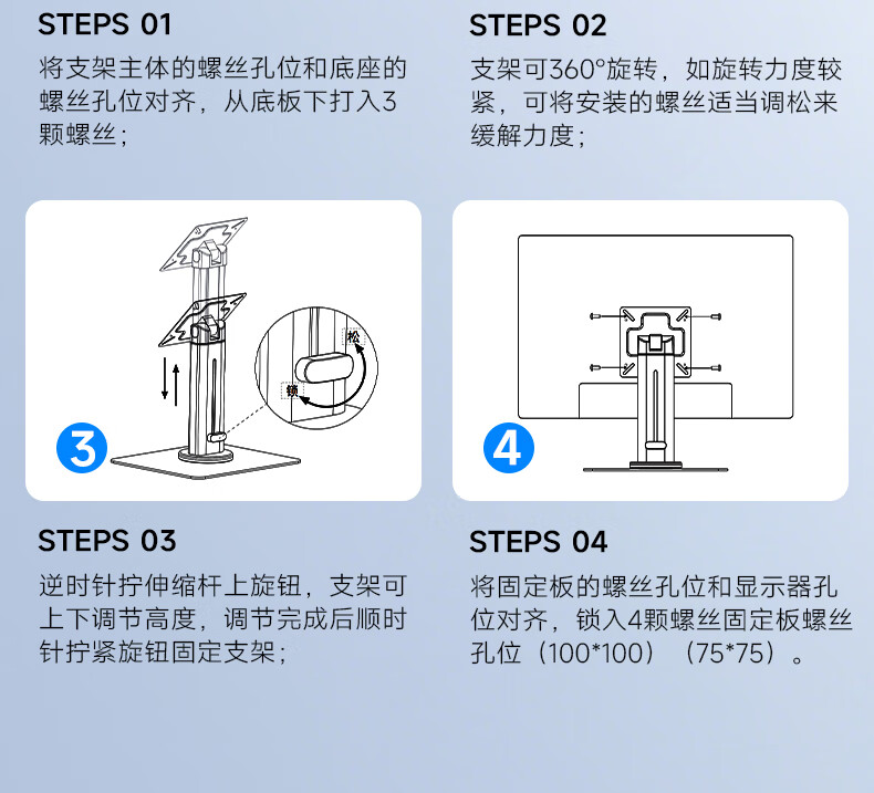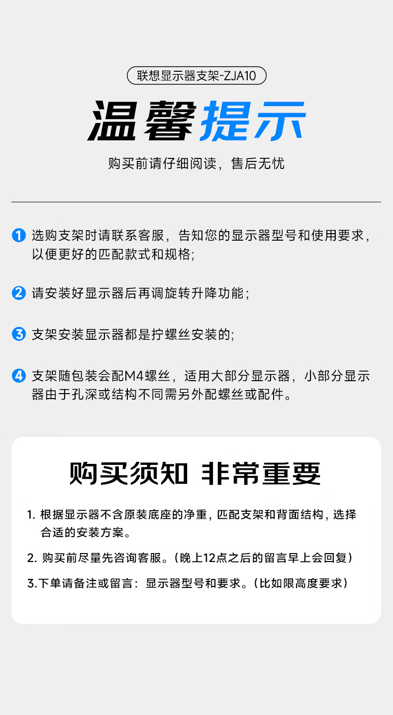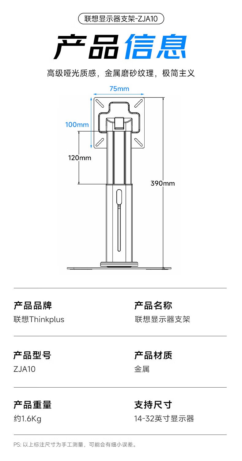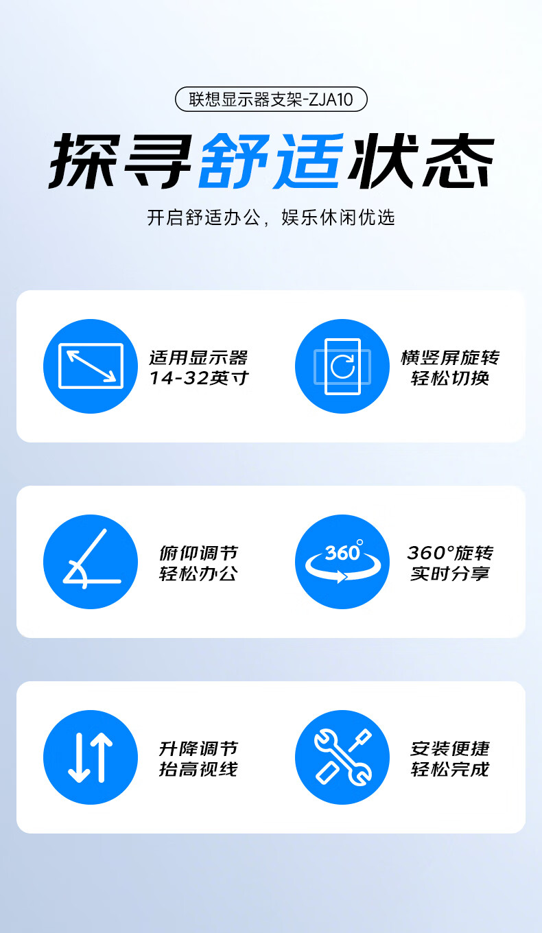 联想(Lenovo) 桌面办公显示器支架 ZJA10 底座360度可旋转 黑色(单位:个)