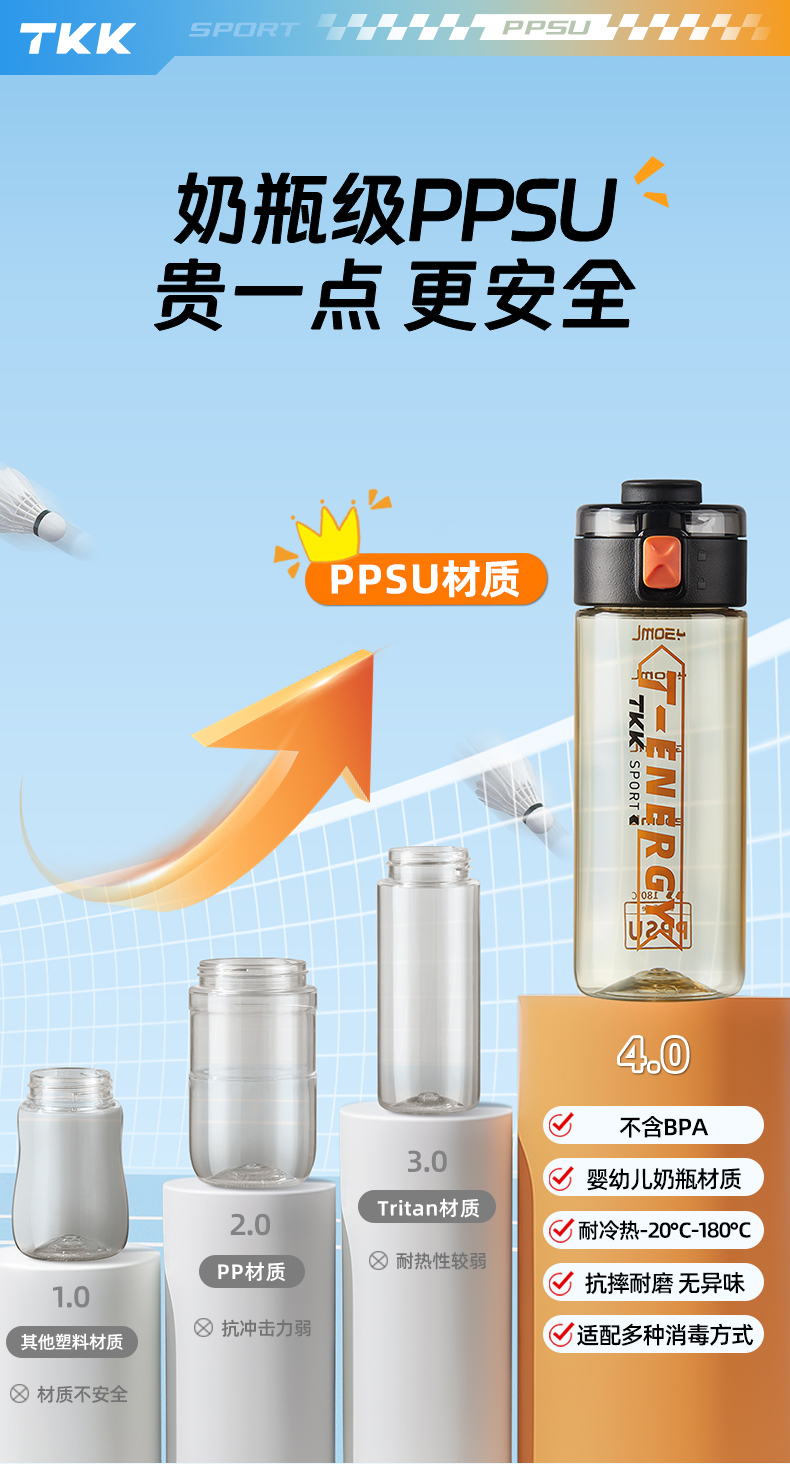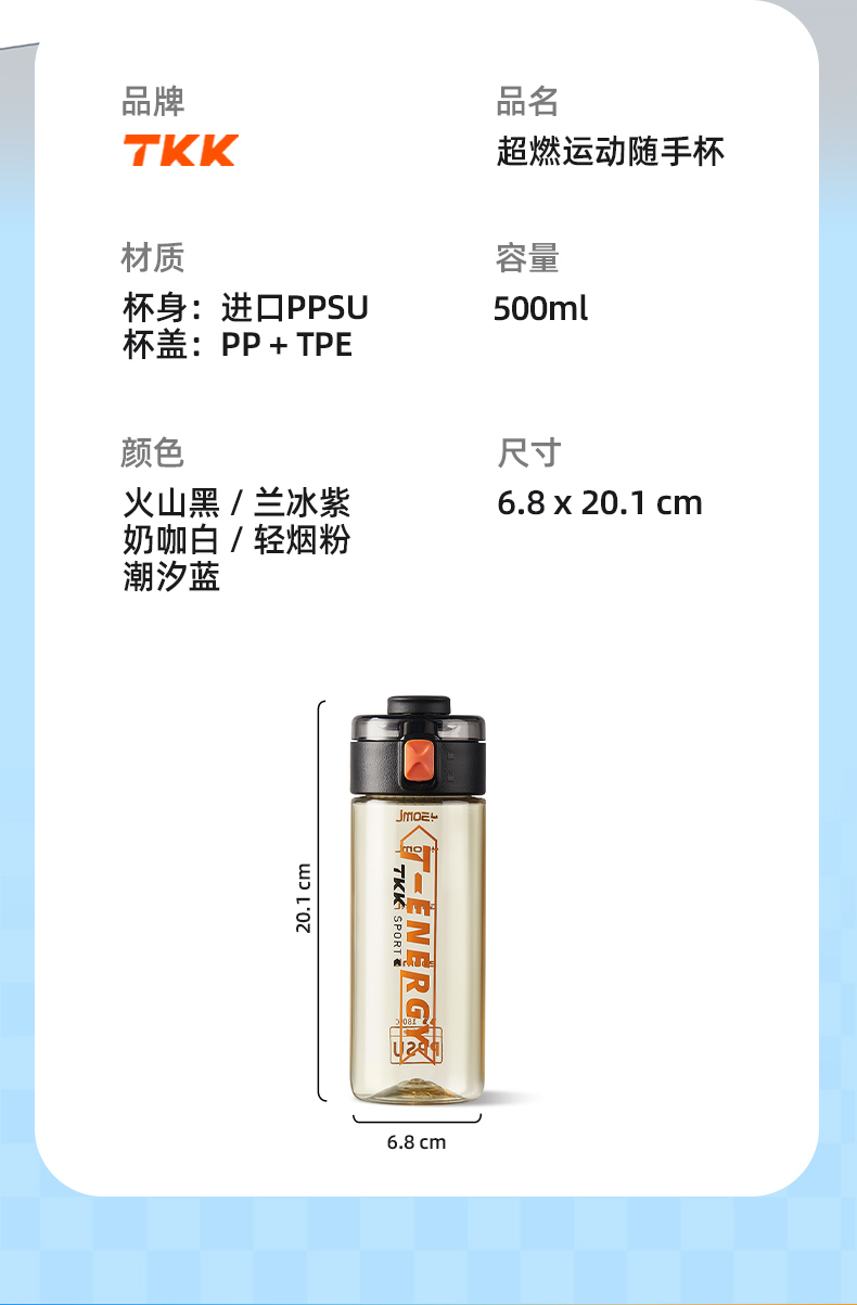 TKK 超燃运动水杯 TKK-1032 500ml 黑色(单位:个)