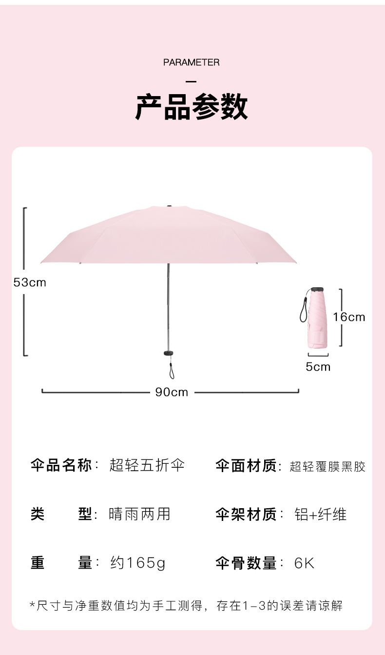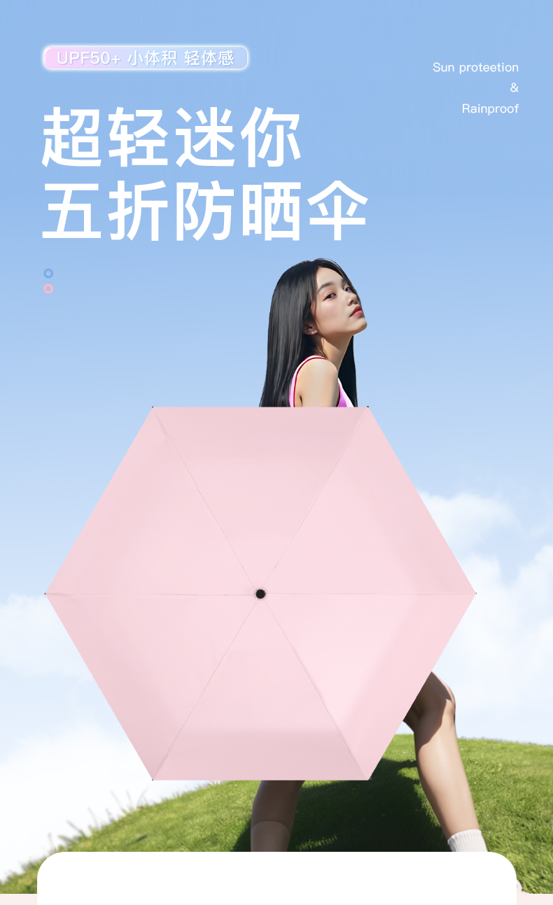 senmoh 超轻迷你五折晴雨两用口袋伞 70362 53.0cm*6K 混色(单位:把)
