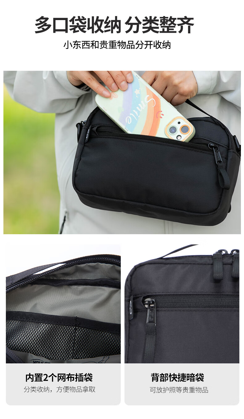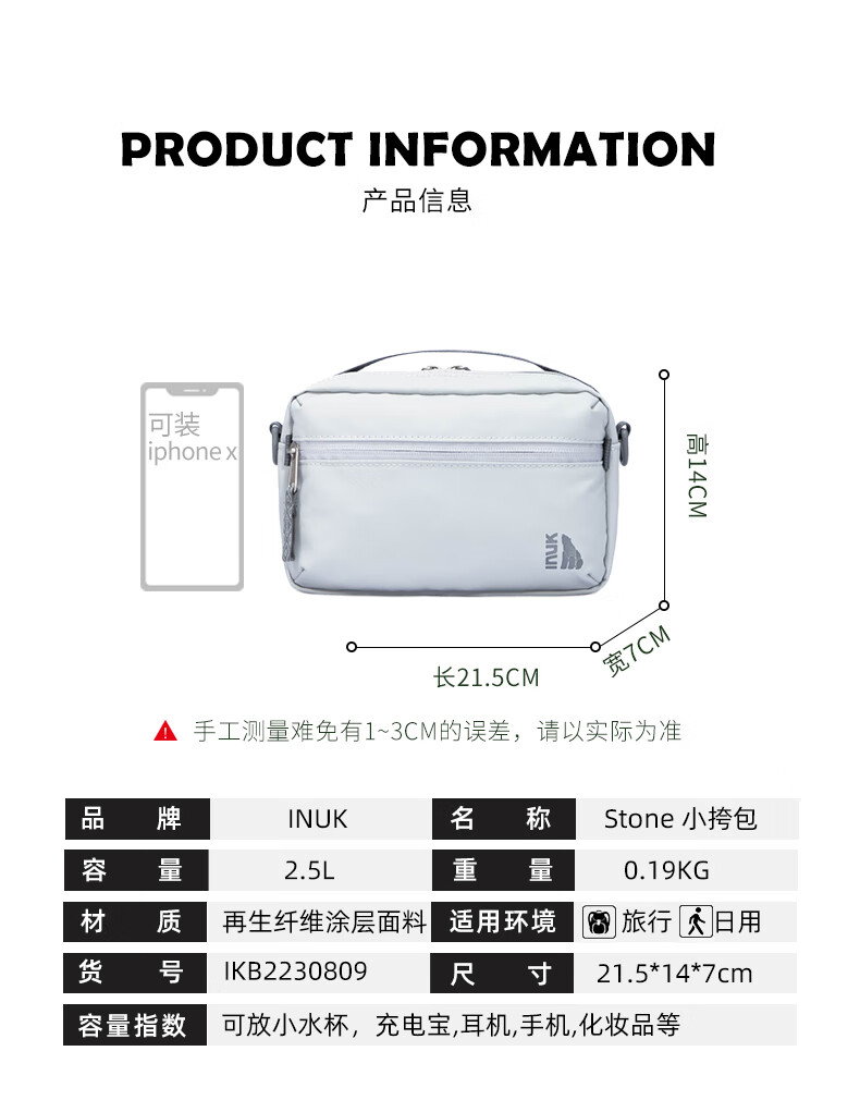 Inuk 山系STONE单肩小挎包 IKB2230809 2.5L 黑色(单位:个)
