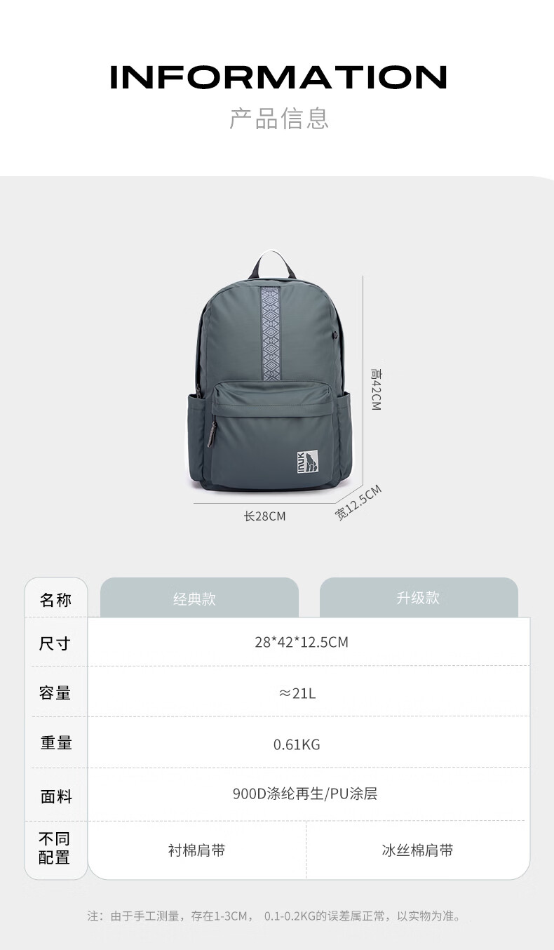 Inuk WUUL 多色双肩背包 IKB2231217 21L 冷寂灰(单位:个)