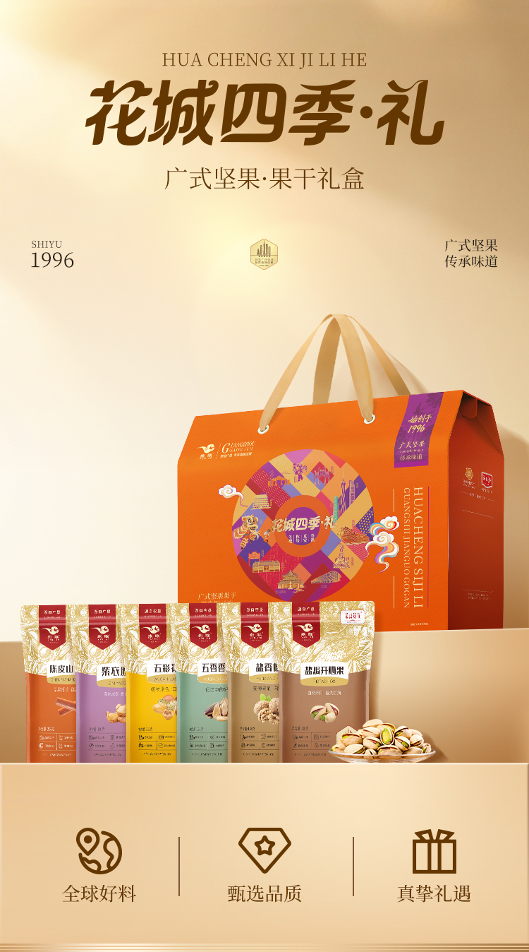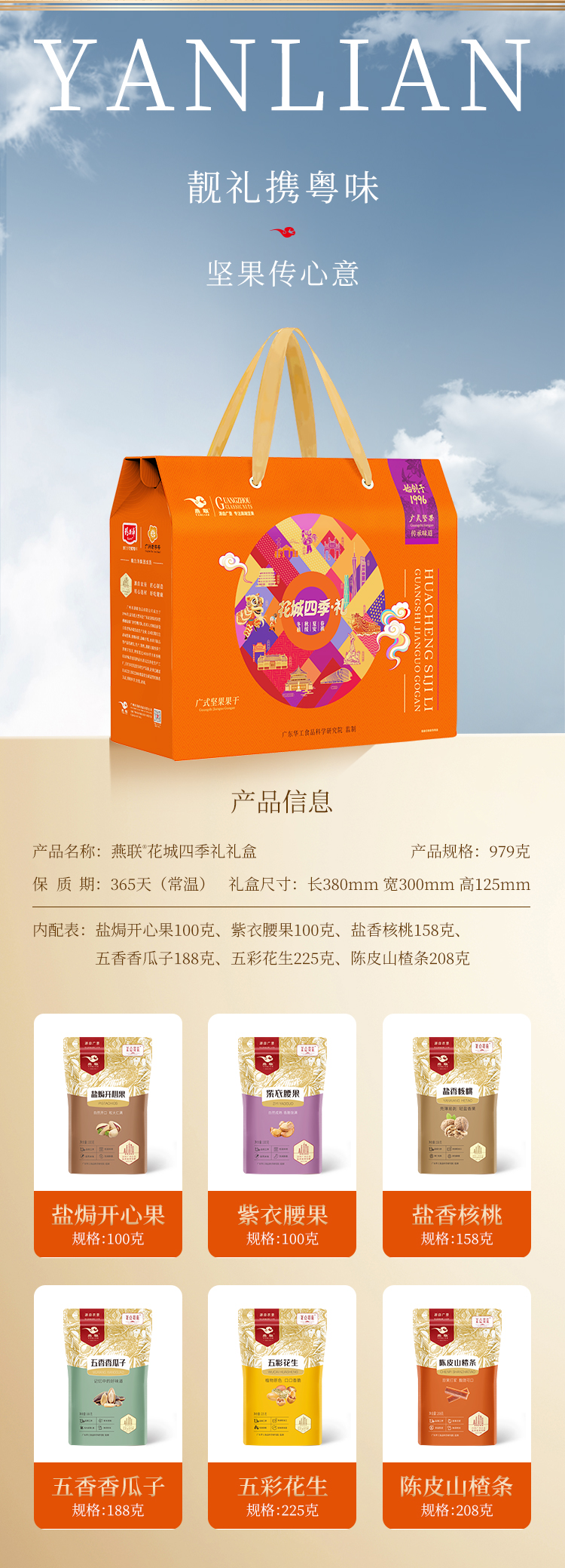 燕联(YANLIAN) 广式果果干零食礼盒 花城四季 979g*1盒(6袋装) 混色(单位:盒)
