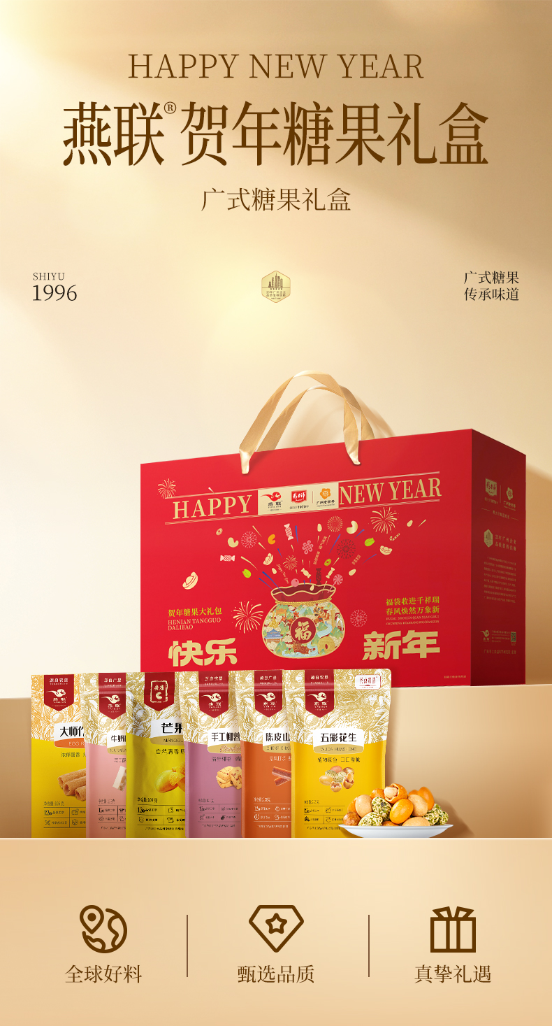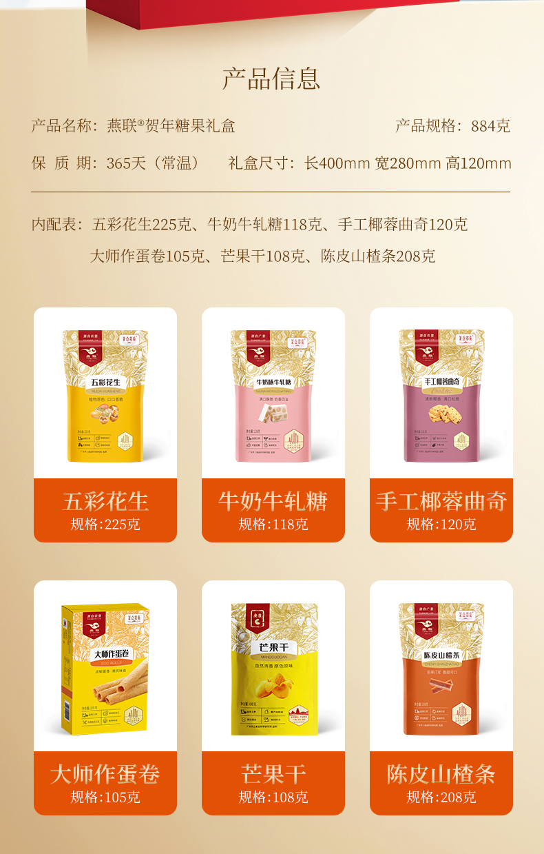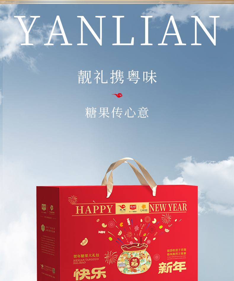 燕联(YANLIAN) 广式零食味道 贺年糖果礼盒 884g*1盒(6袋装) 混色(单位:盒)