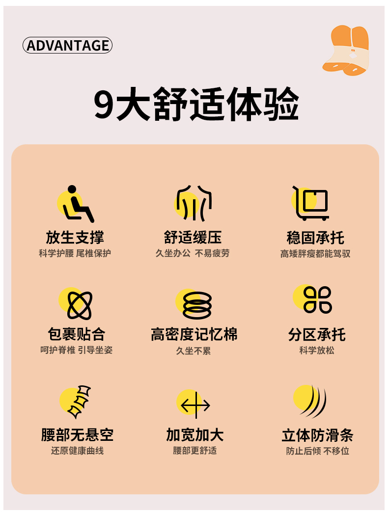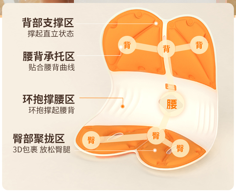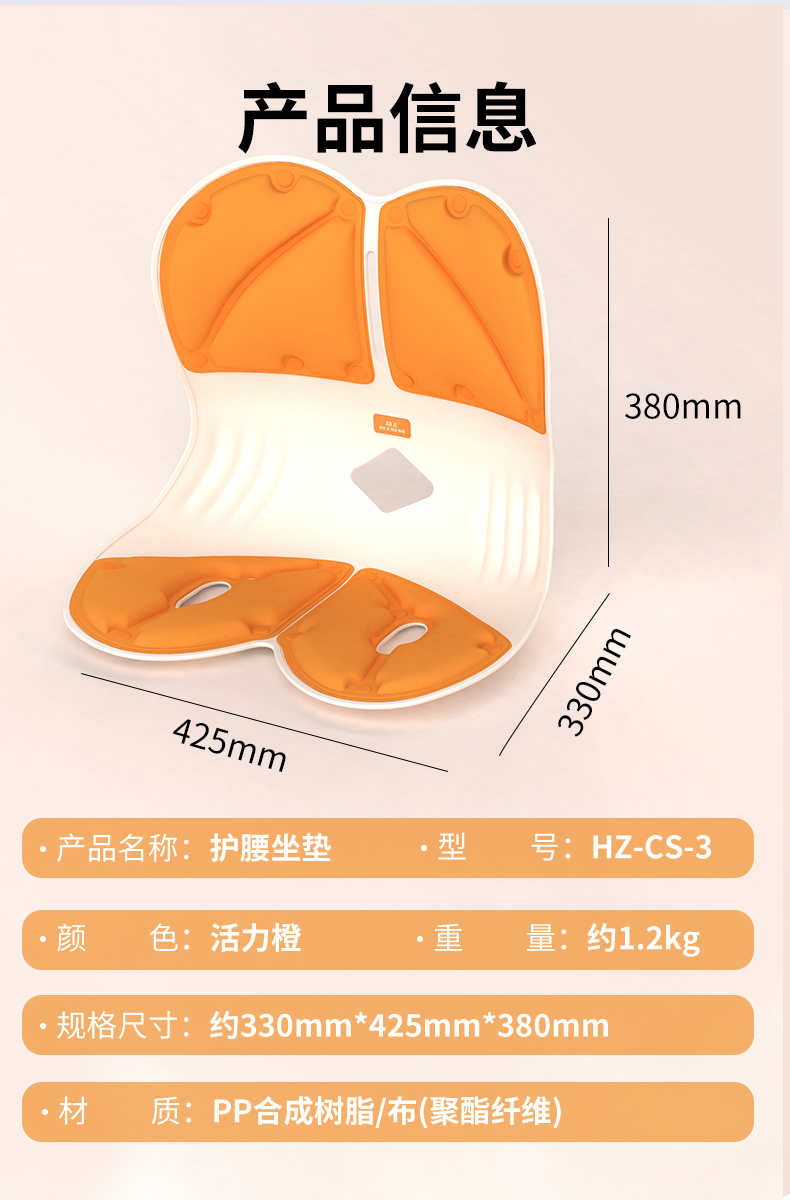 和正(HEZHENG) 护腰支撑坐垫 HZ-CS-3 规格尺寸:约330mm*425mm*380mm 橙色(单位:个)