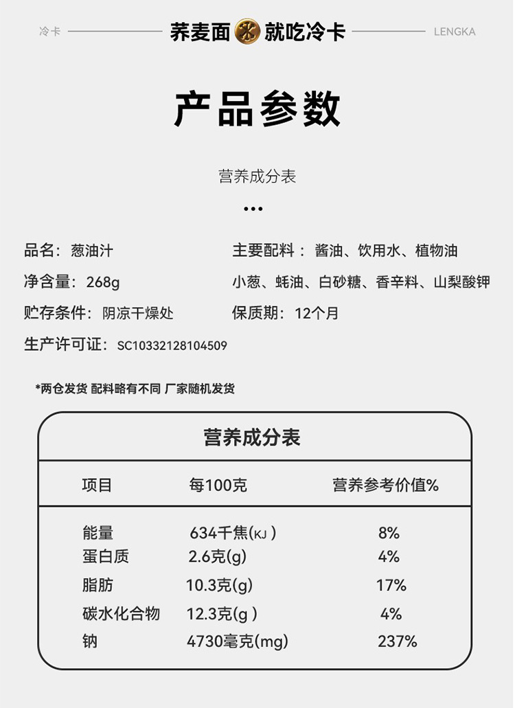 冷卡 轻食代餐面条 上海葱油风味组合 868g 曜石黑(单位:组)