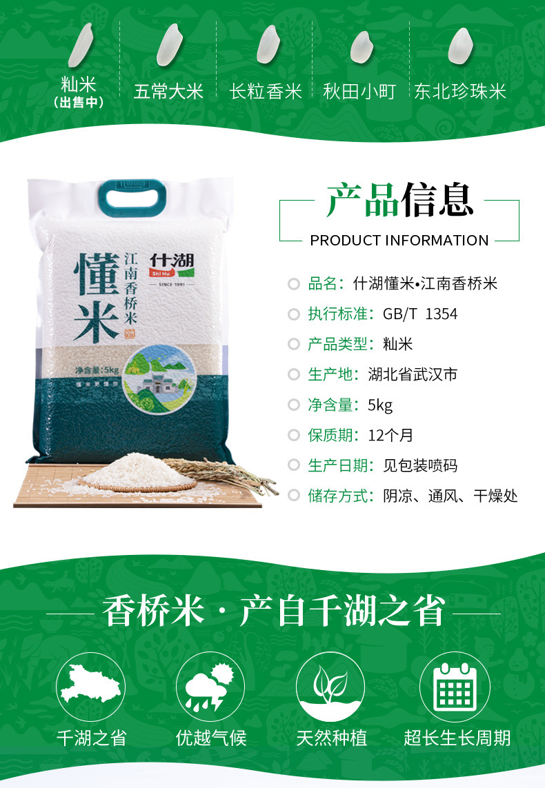 什湖(SHIHURICE)懂米江南香桥米5kg/袋 当季新米(单位:袋) 白色