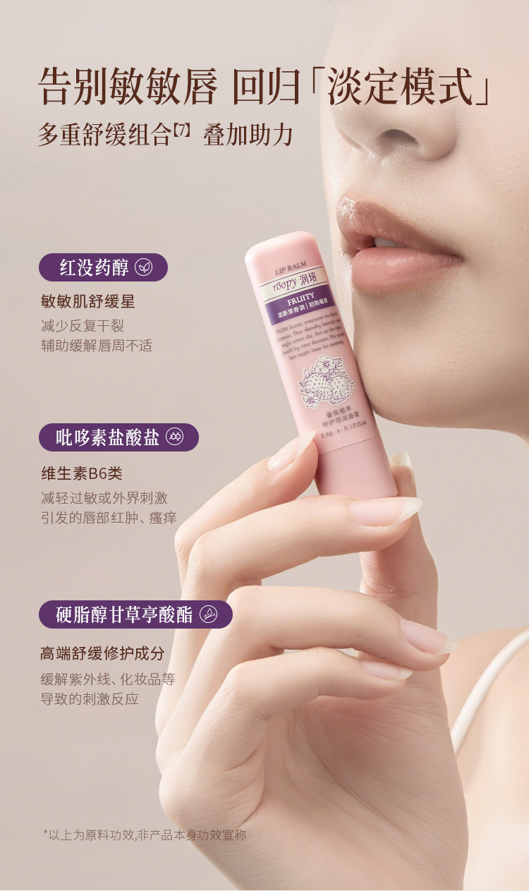 ROOPY 香氛保湿淡纹修护唇膏润死皮唇部精华草莓味 初熟莓果 3.8g 粉色(单位:支)
