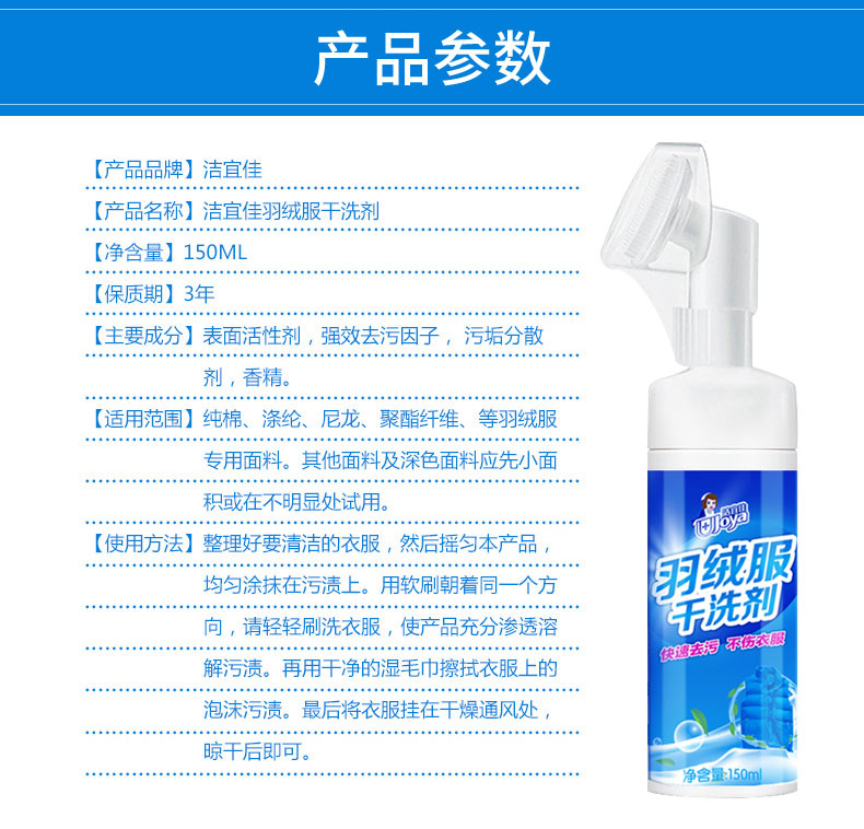 洁宜佳(JOYA) 羽绒服干洗剂 泡沫免水洗去污去油渍 150ml 蓝色(单位:瓶)
