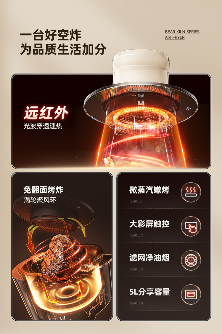 小熊(Bear) 空气炸锅 QZG-J12H1 5L 白色(单位:个)