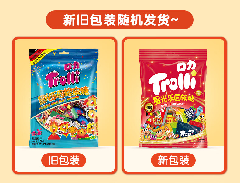 口力 Trolli儿童糖果 休闲零食 0脂肪 星光乐园软糖礼包 200g 红色(单位:袋)