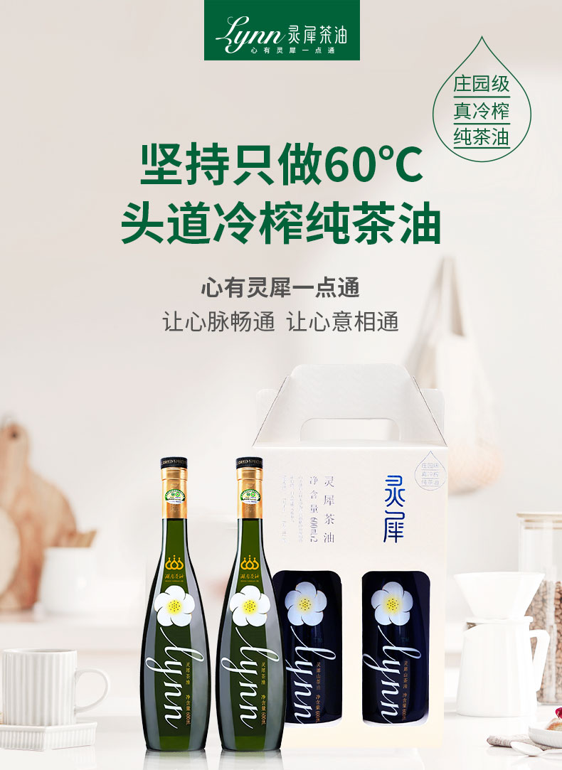 灵犀 低温物理冷榨 精选山茶籽庄园级真冷榨纯茶油 600ml*2瓶礼盒 混色(单位:组)