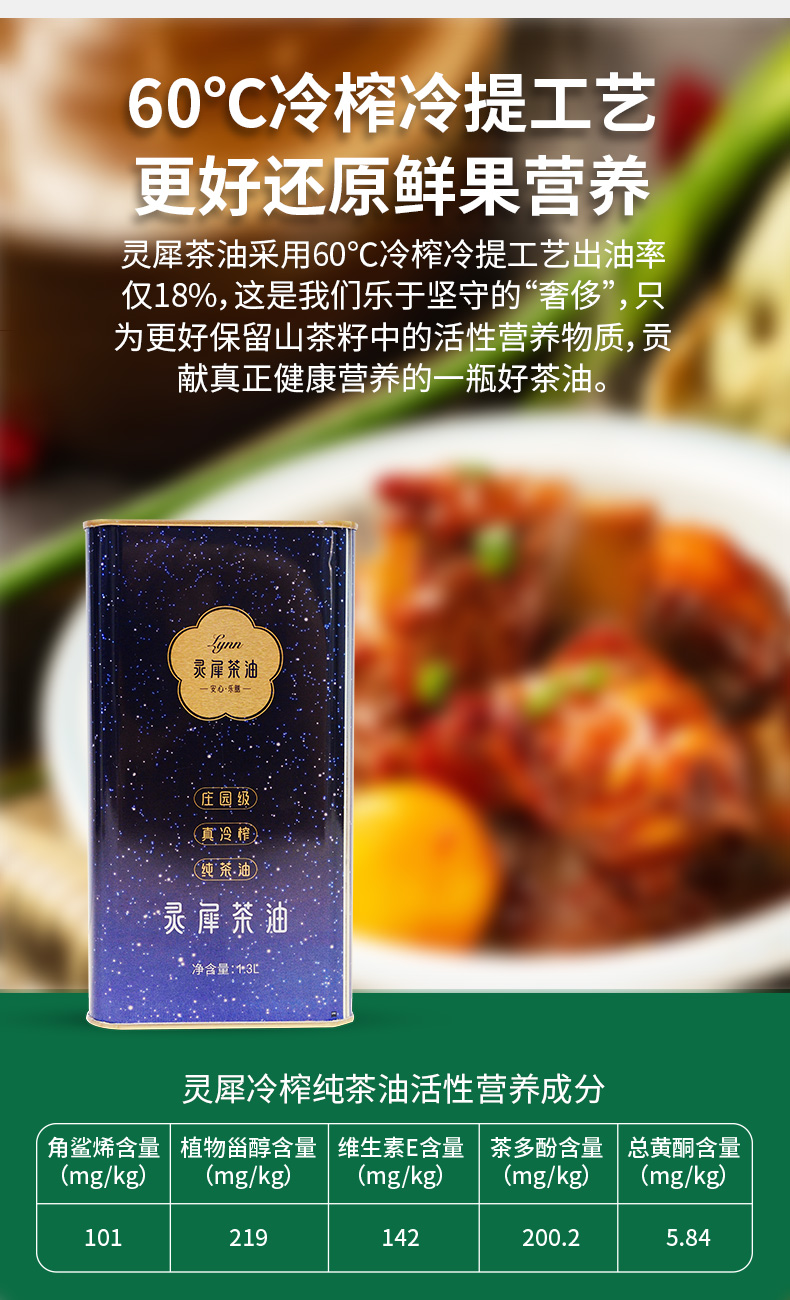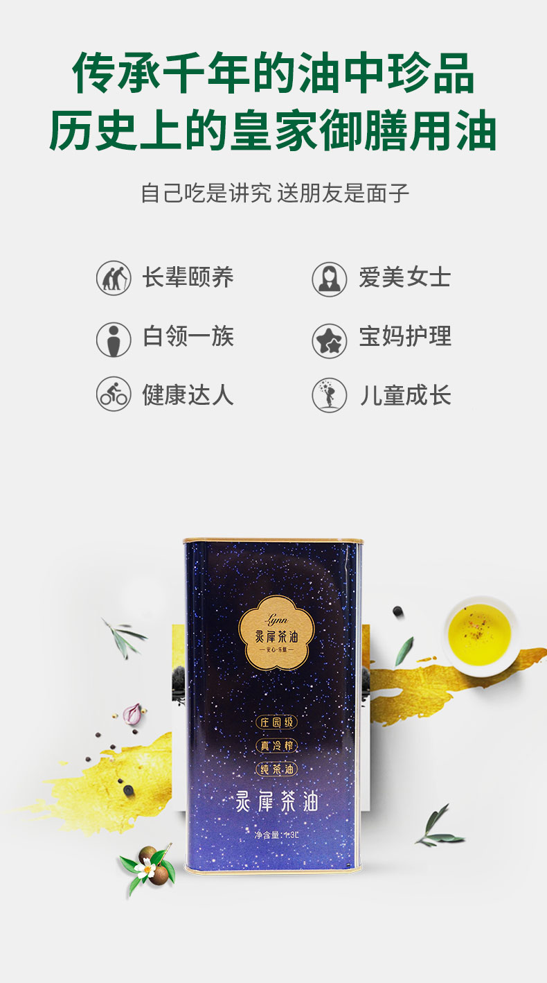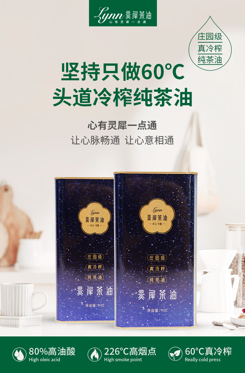 灵犀 山茶油 庄园级/真冷榨/纯茶油山茶油 1.3L马口铁 蓝紫色(单位:罐)