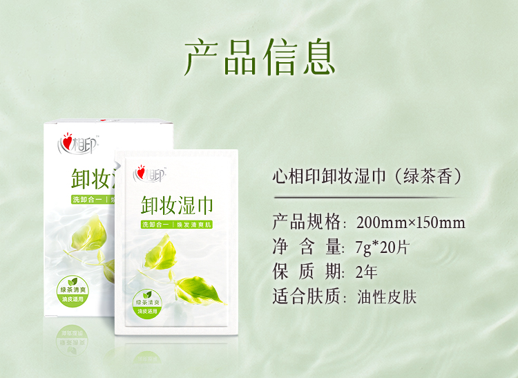 心相印 卸妆湿巾(绿茶香) XCM001 2盒*1组 白色(单位:组)
