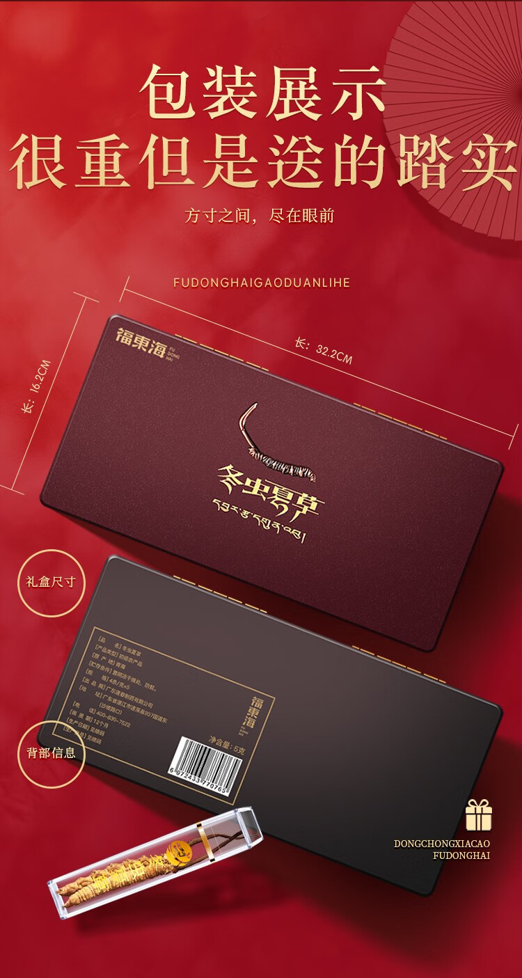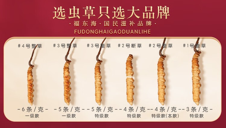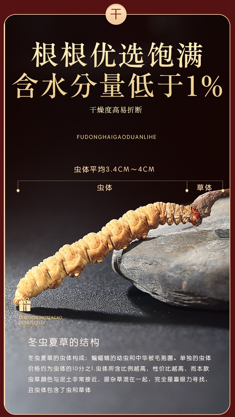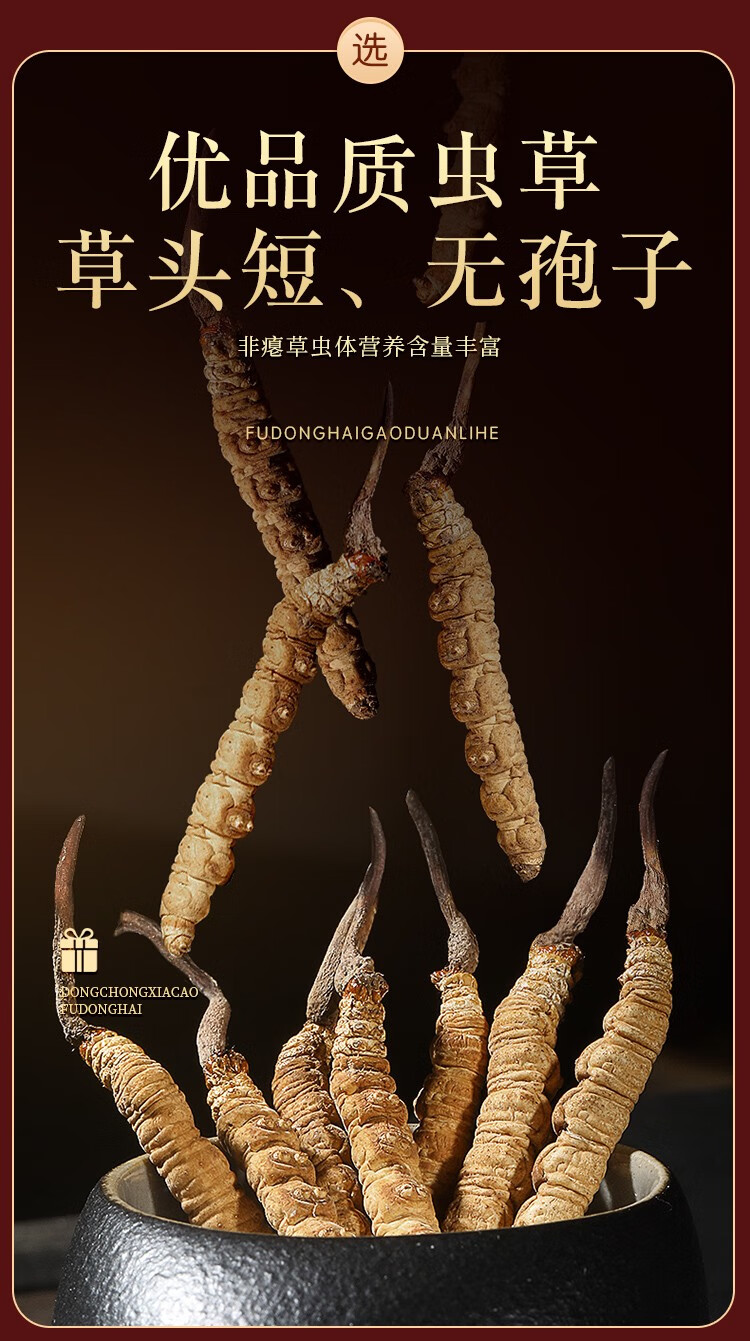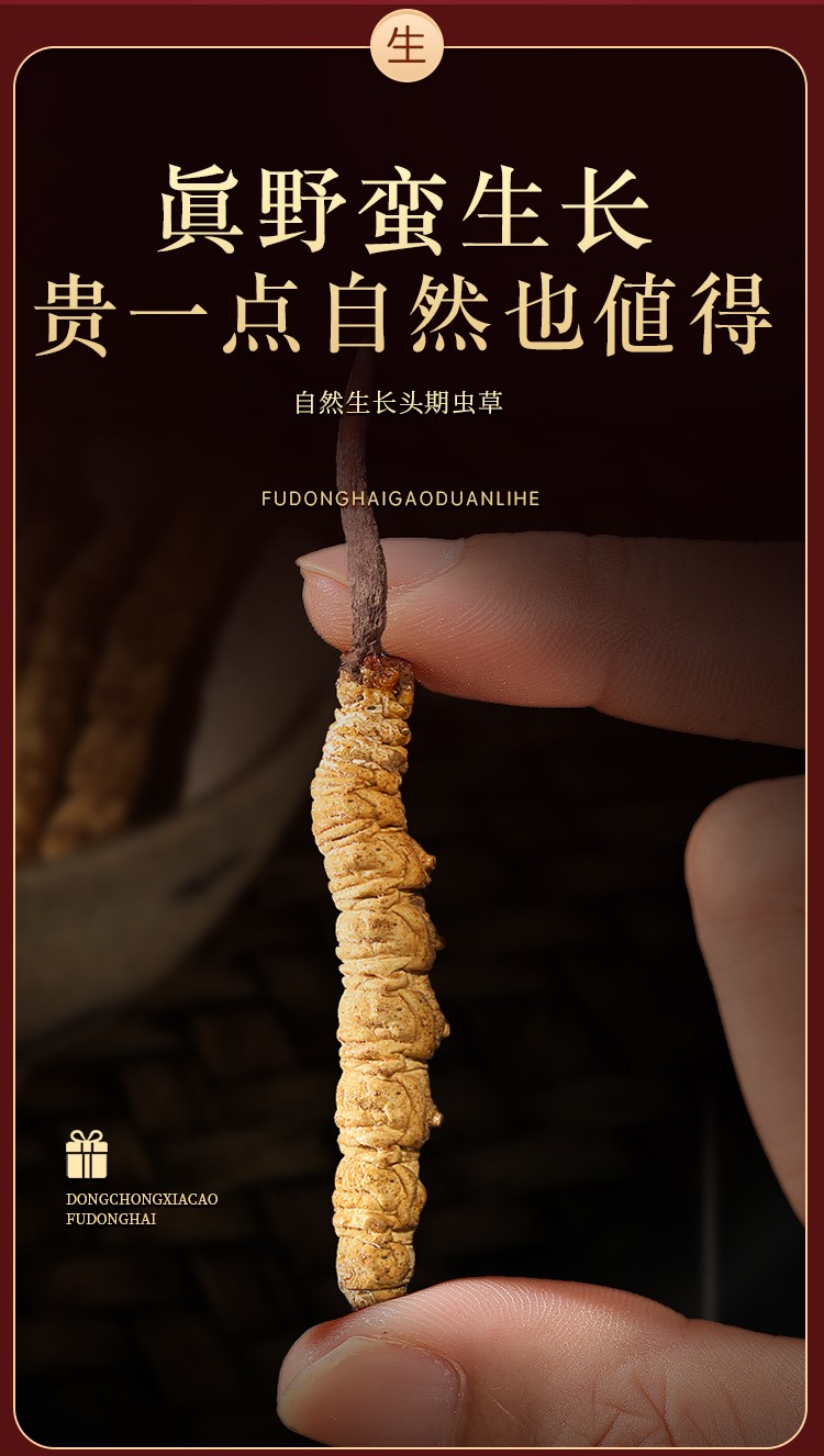 福东海(fudonghai) 冬虫夏草5克 (4-5条) 青海高海拔虫草 送礼礼盒装 棕色(单位:盒)