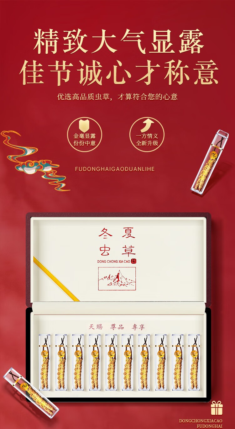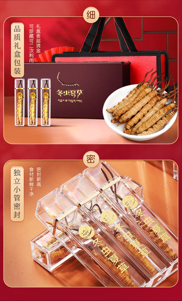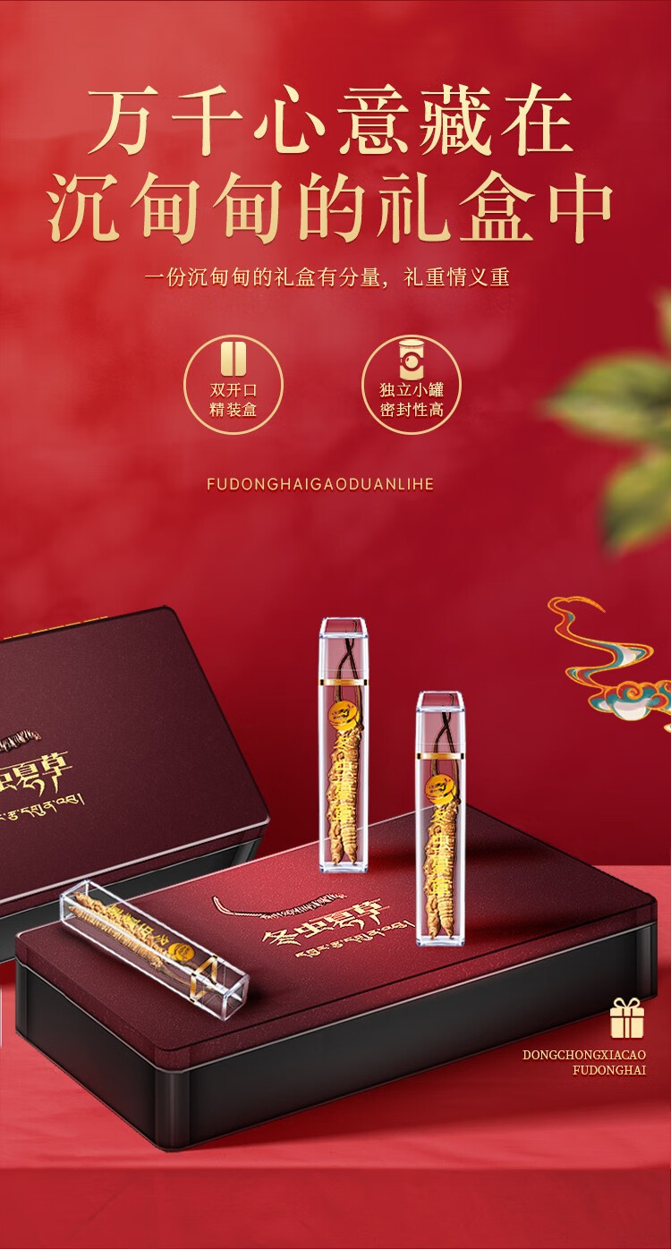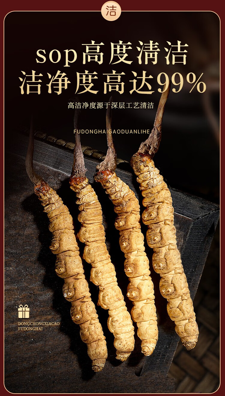 福东海(fudonghai) 冬虫夏草5克 (4-5条) 青海高海拔虫草 送礼礼盒装 棕色(单位:盒)