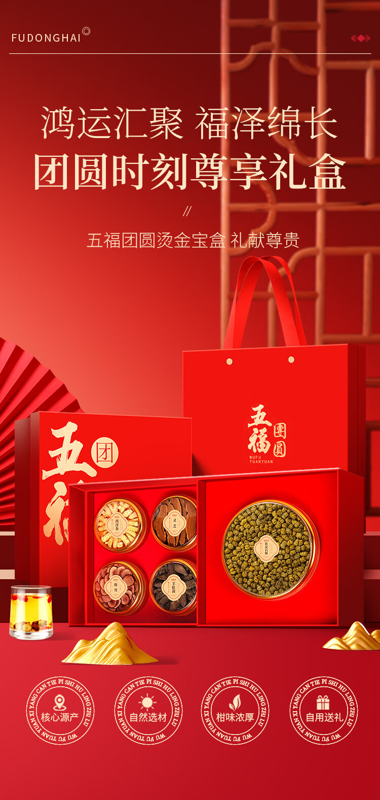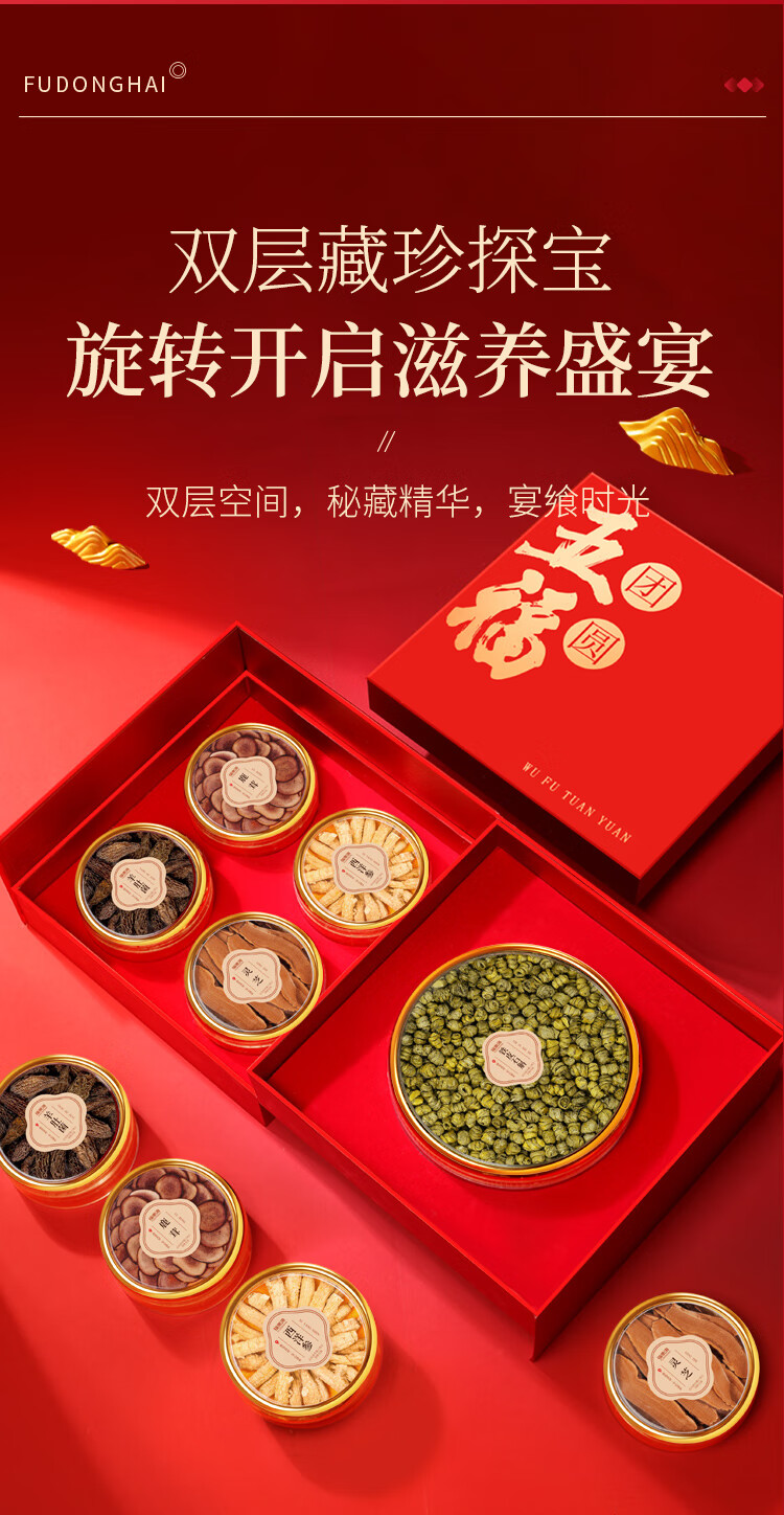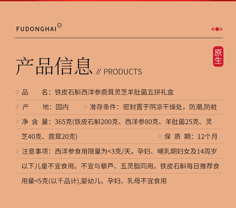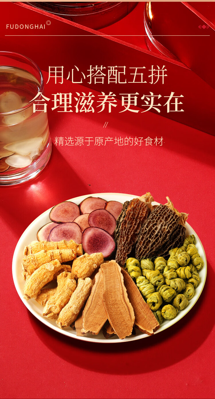 福东海(fudonghai) 石斛西洋参鹿茸羊肚菌灵芝 五拼- 365克/盒 红色(单位:盒)
