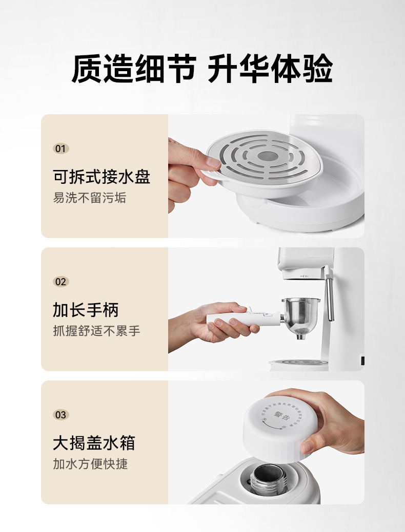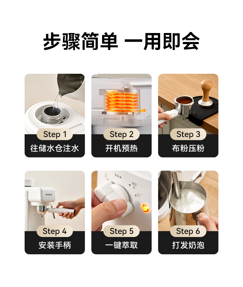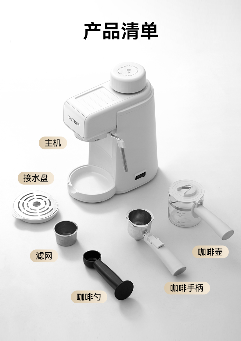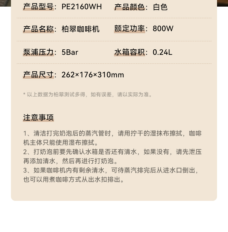 柏翠(petrus) 咖啡机 PE2160WH 800W功率,0.24L容量意式压力半自动一体 白色(单位:台)