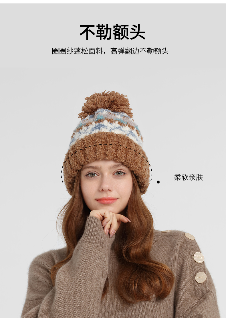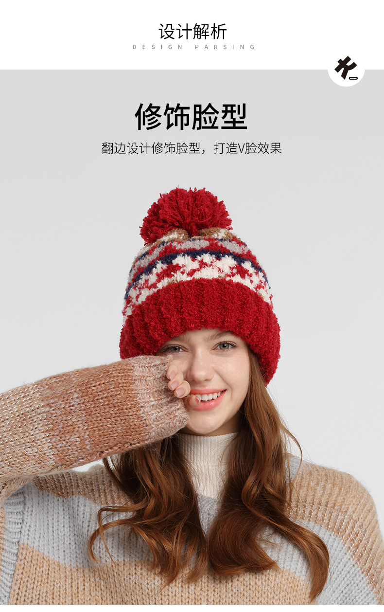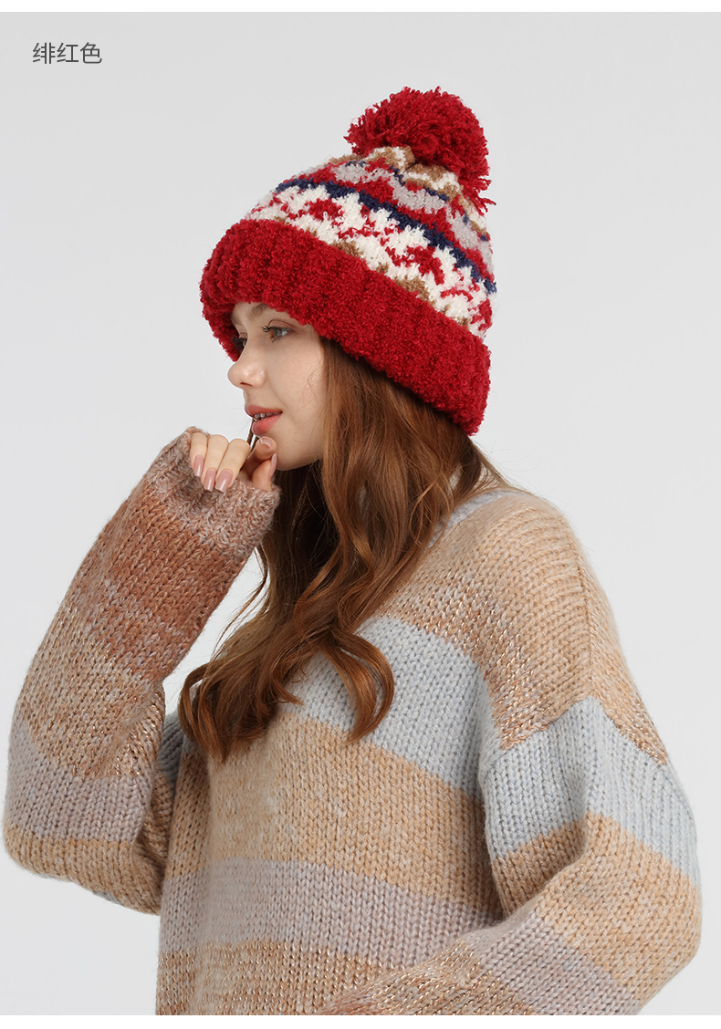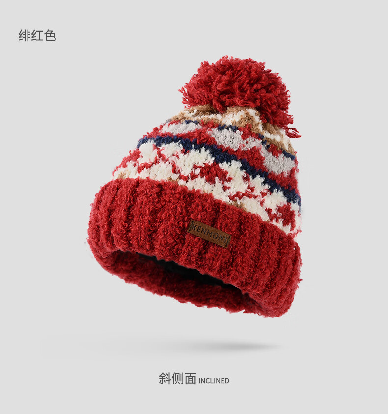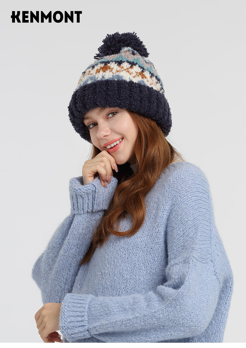 卡蒙(Kenmont) 羊驼毛圈圈纱提花针织帽 KM-9442-170 55-58cm 绯红色(单位:顶)