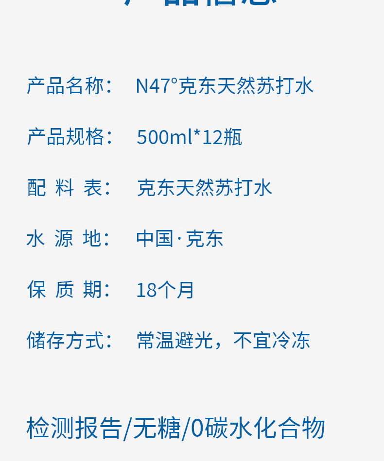 N47° N47克东天然苏打水PET (蓝箱) 500ml 12瓶 蓝色(单位:瓶)