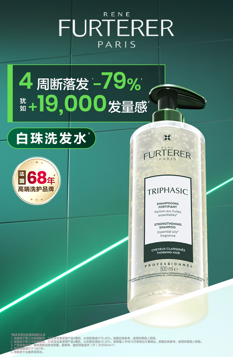 馥绿德雅(RENE FURTERER) 小白珠洗发水 强韧 500ml 浅白色(单位:瓶)