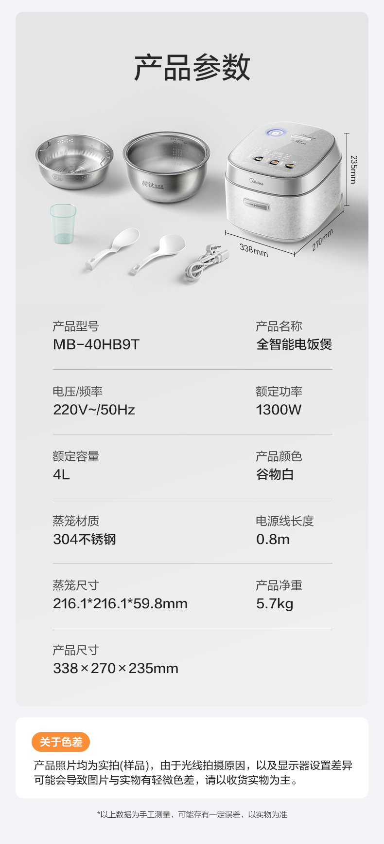 美的(Midea) 电饭煲 MB-40HB9T 4L 谷物白(单位:台)